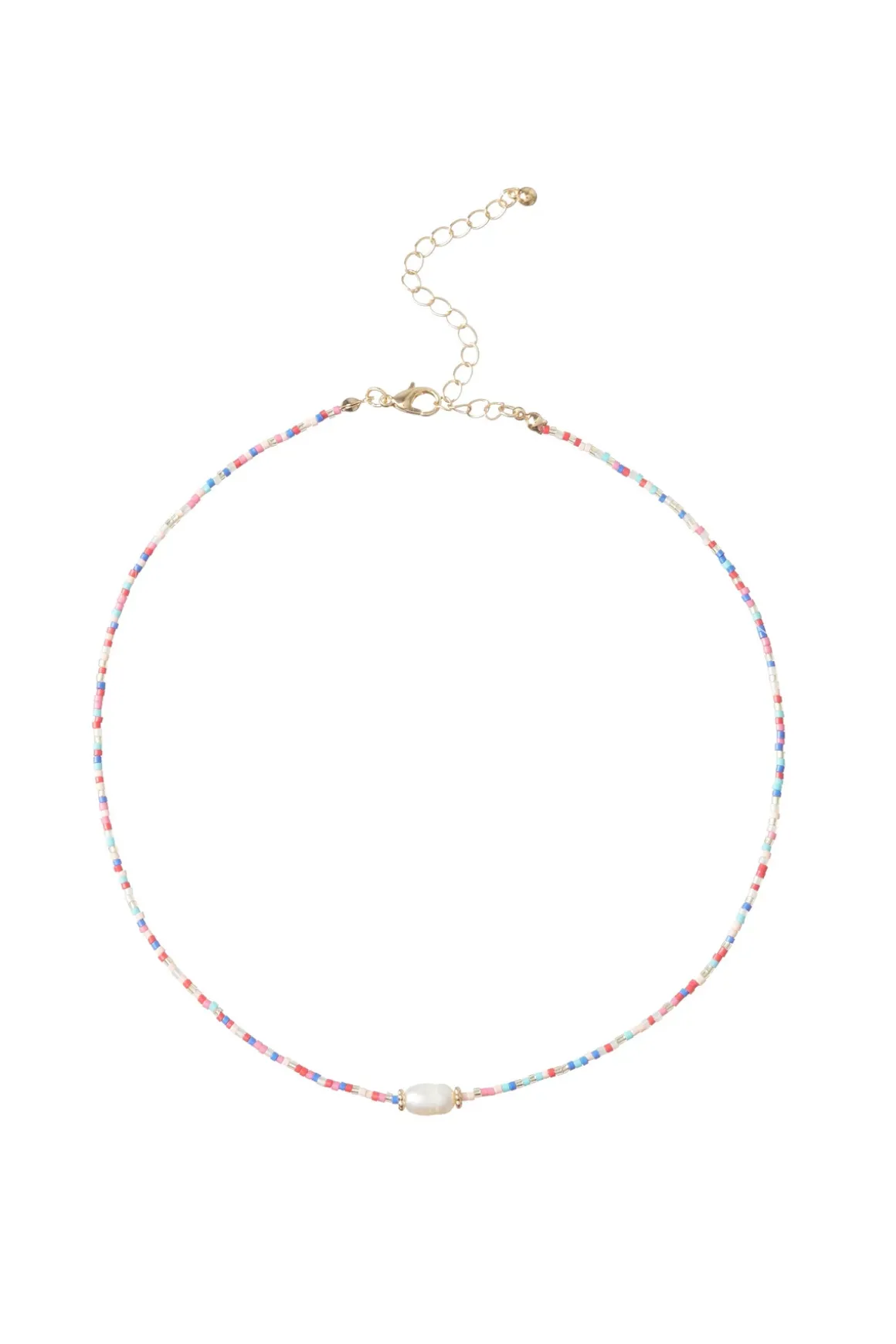 Necklace features a glass beaded chain with a cultured center pearl accent and offers a lobster clasp closure.