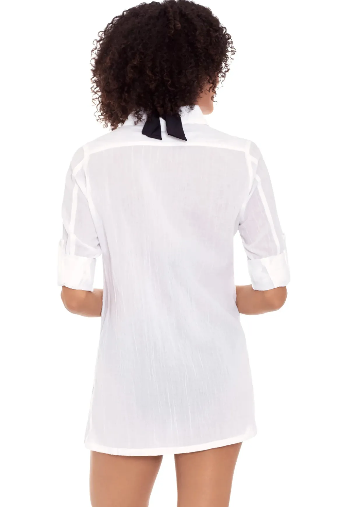 Button down camp shirt with front pockets and three quarter length sleeves.