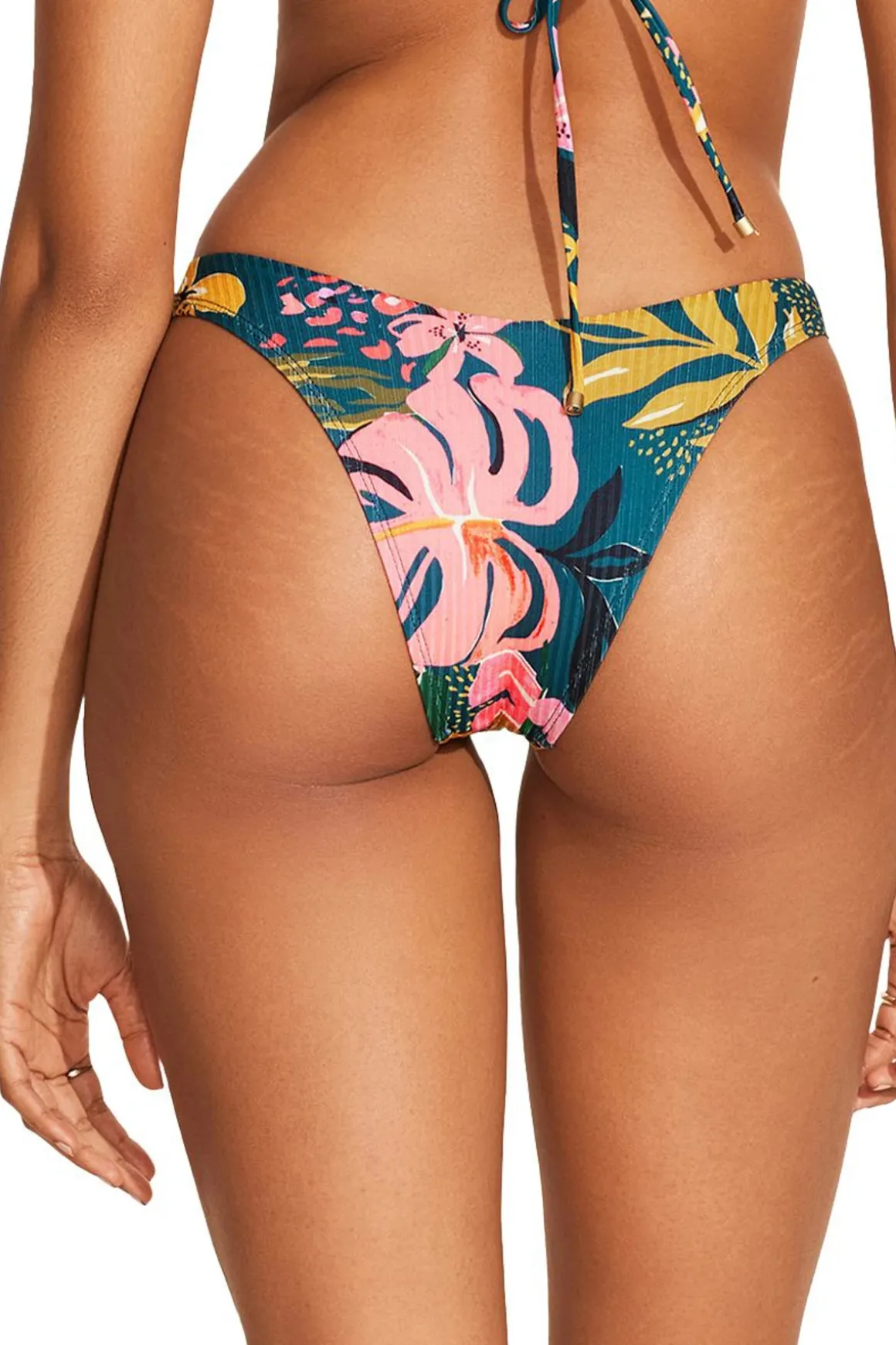 California brazilian bikini bottom offers a scoop waist, a high leg cut and minimal coverage.