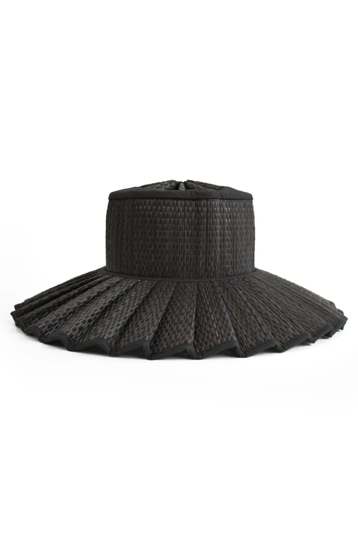 Capri sun hat features a mid-length brim, is carefully handcrafted from 100% Natural Organic Grass Fibers, and is specifically designed to collapse and fold like origami due to the sunray pleats for easy packing and traveling. Offers optional ties that are provided at the base of each hat to be used for anchoring during breezes. Capri features colored thread woven throughout its natural fiber base with soft cotton trimming.