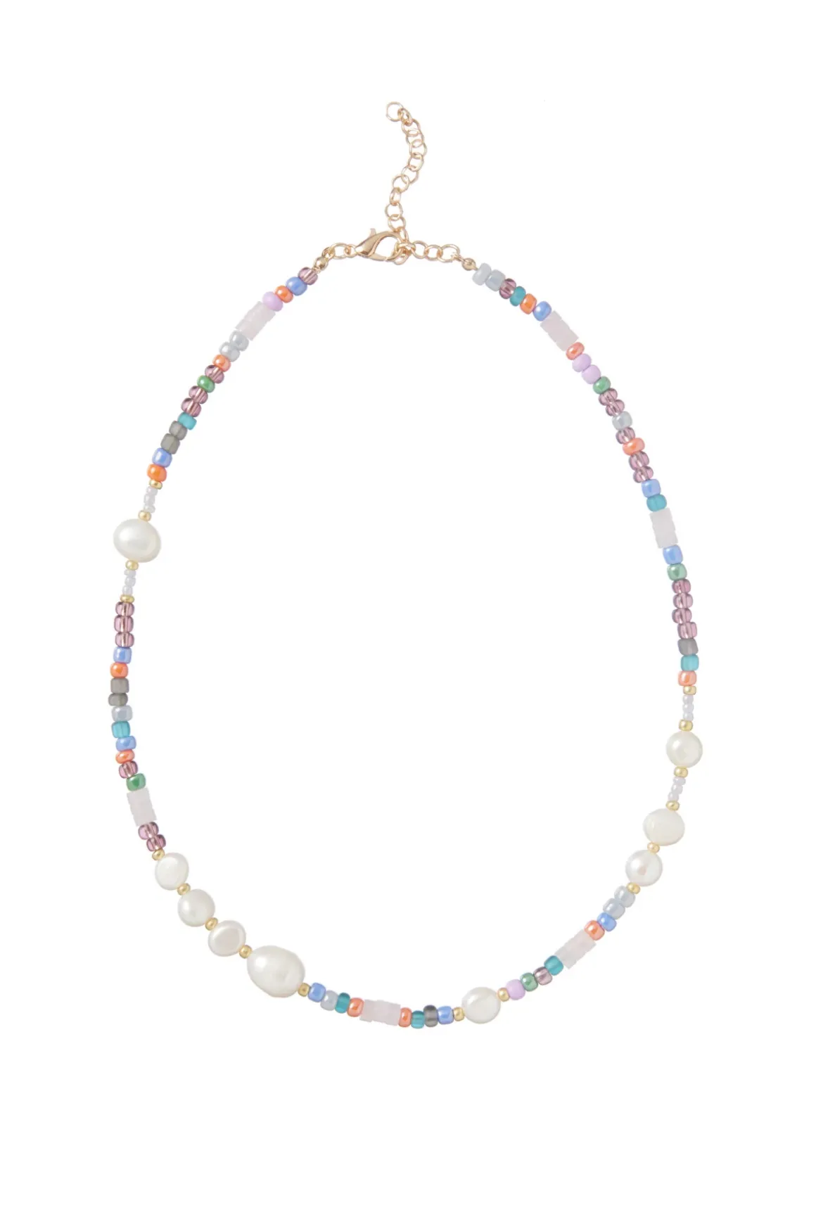 Necklace features pearl and multi-colored beads and offers a lobster clasp closure.