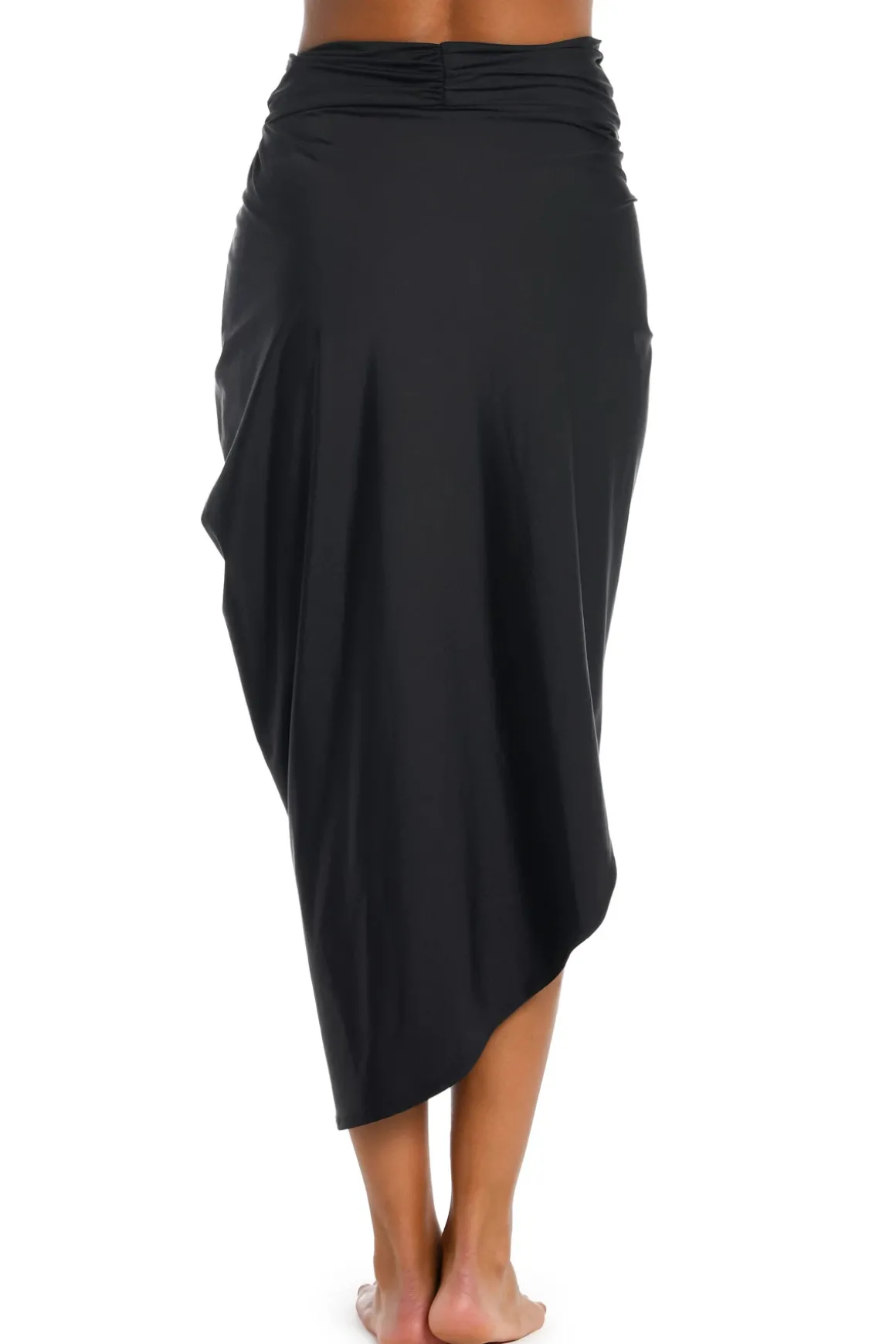 Pareo features a faux wrap design and can be worn multiple ways.