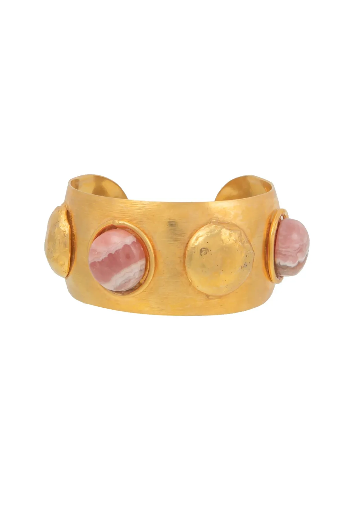 Curve cuff is a beautifully hand-crafted 22k yellow gold-plated brass slip-on cuff featuring gemstones.