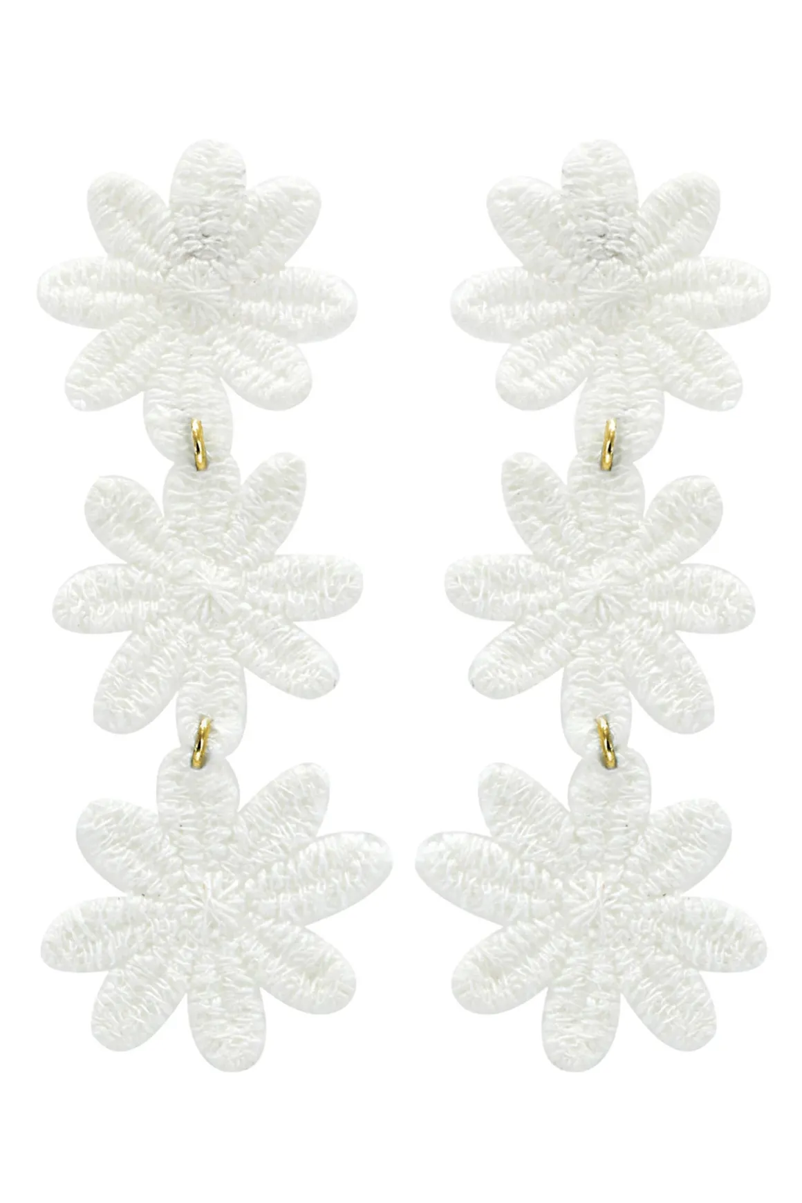 Earrings feature cotton crocheted daisies and offer post-back closures.