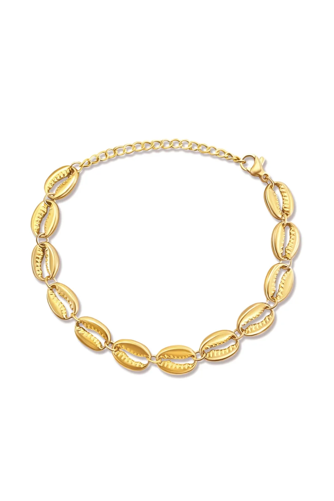 Demna shell bracelet features hypoallergenic gold-plated stainless steel that is water resistant and offers a lobster clasp closure.
