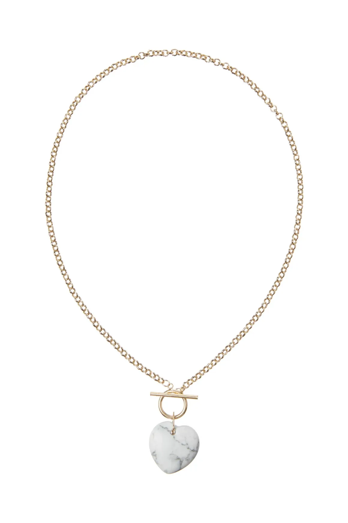 The Ela Gem necklace adds a touch of femininity to your layered look with a beautiful heart shaped gemstone pendant. Toggle clasp closure.