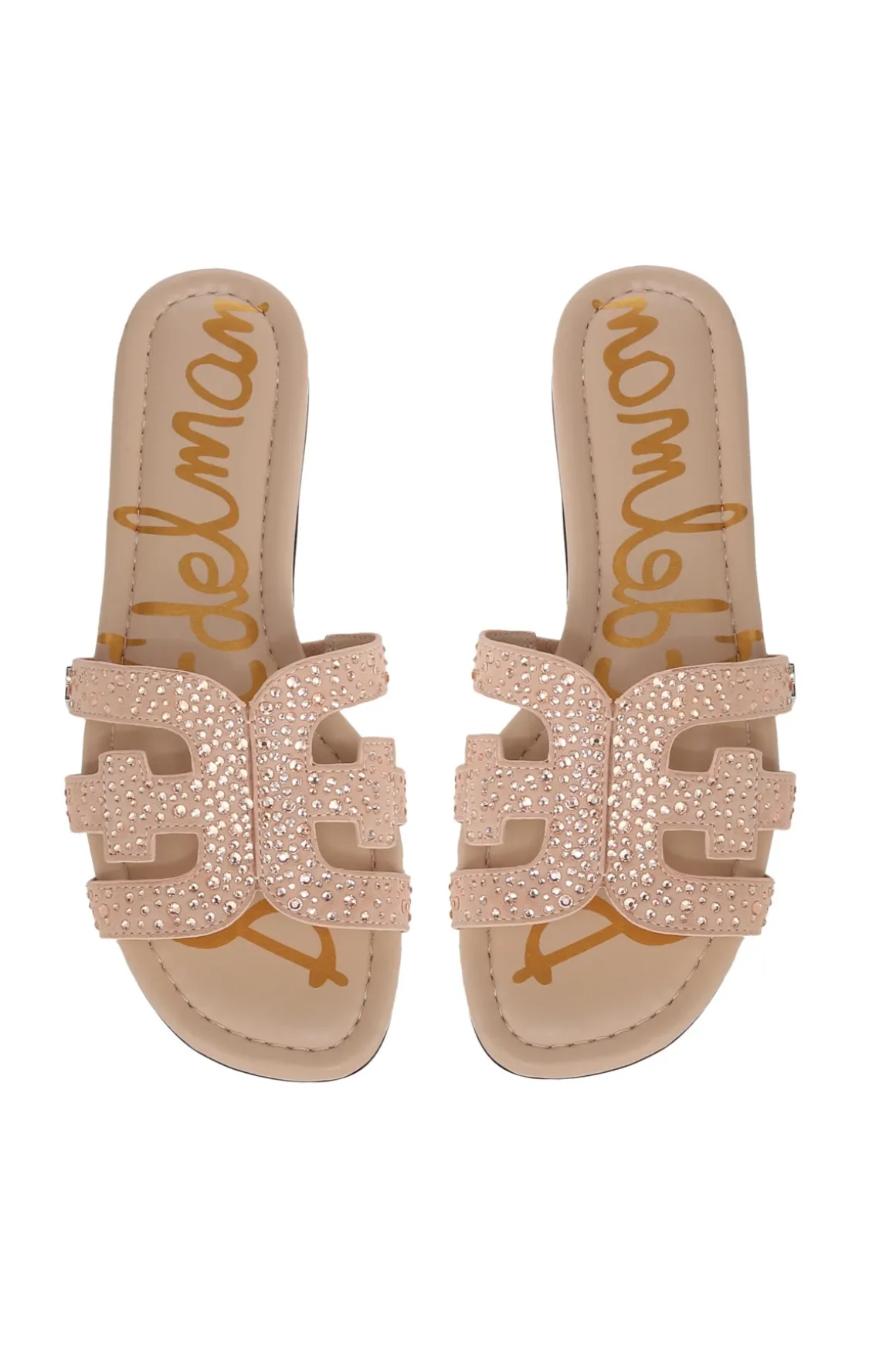 Gem slide features crystal embellishments and offers a slightly elevated heel.
