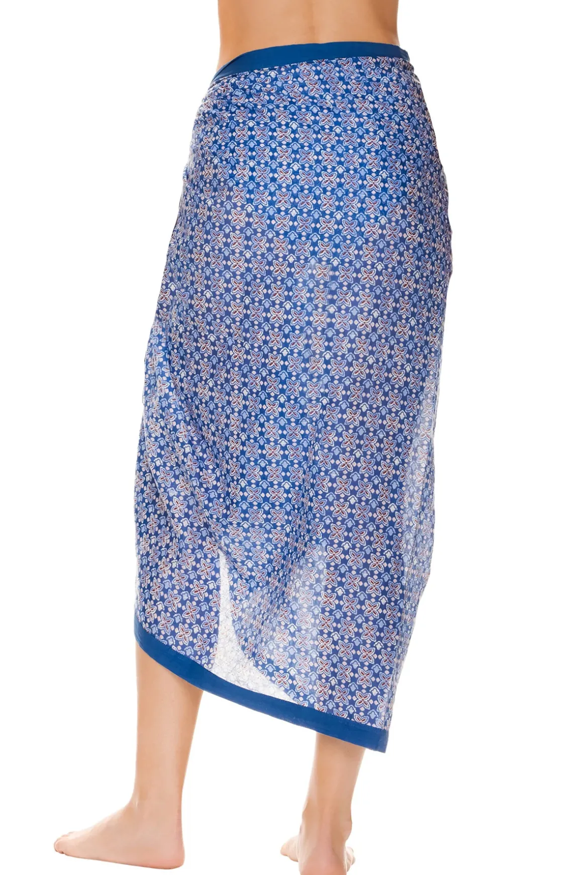 Pareo features a geometric tile print framed by a bold solid border and can be styled in multiple ways.
