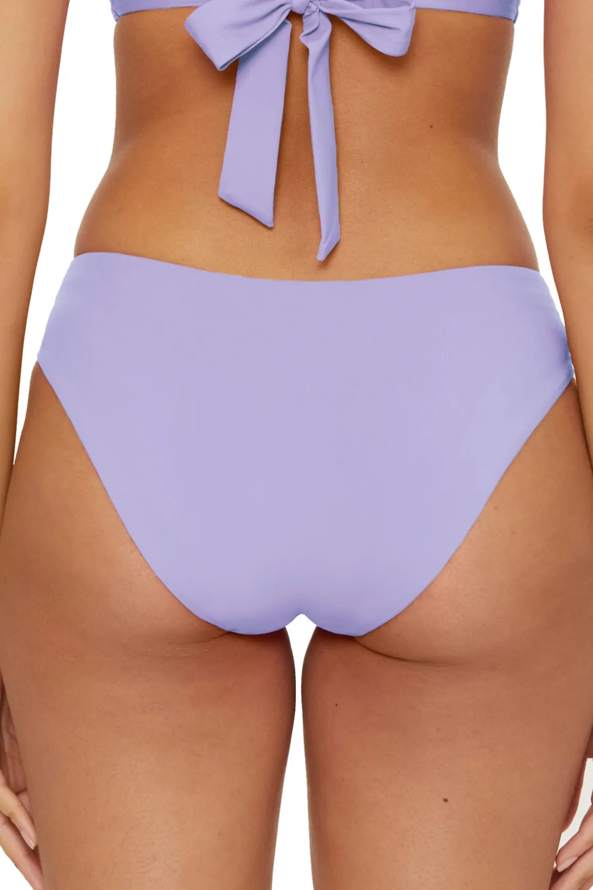 Gracie hipster bikini bottom features gold rings with matching marbleized inlay stones at the sides and offers moderate coverage.