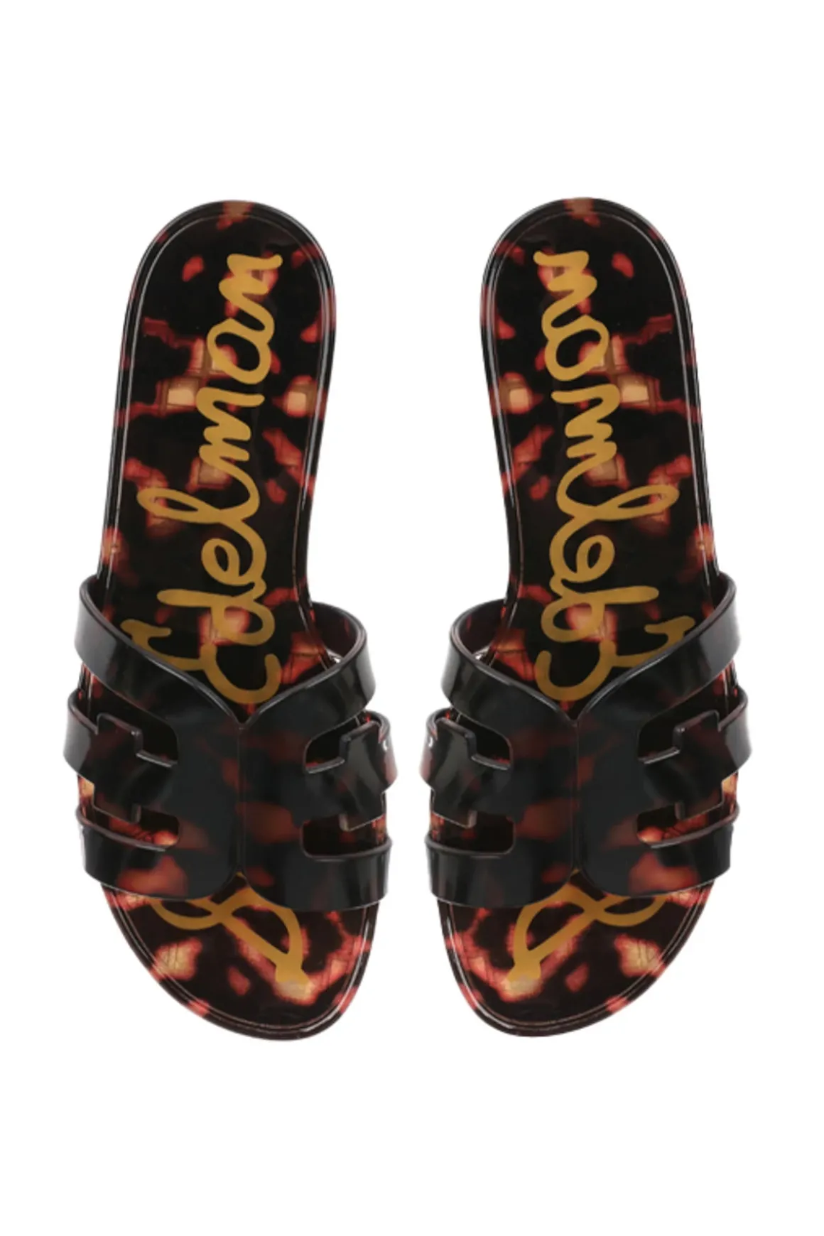 Irina slide features the brands signature double-E logo, PVC footbed, a jelly sole and a slightly elevated heel.
