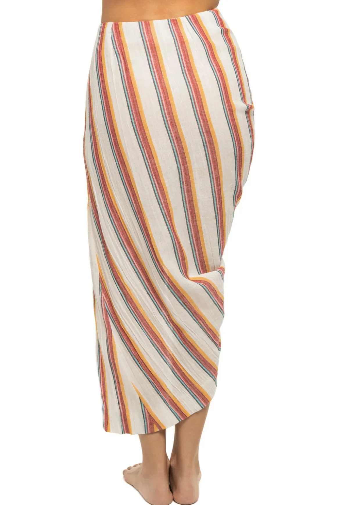 Issa midi skirt features a gathering at the side and a high-low hem.
