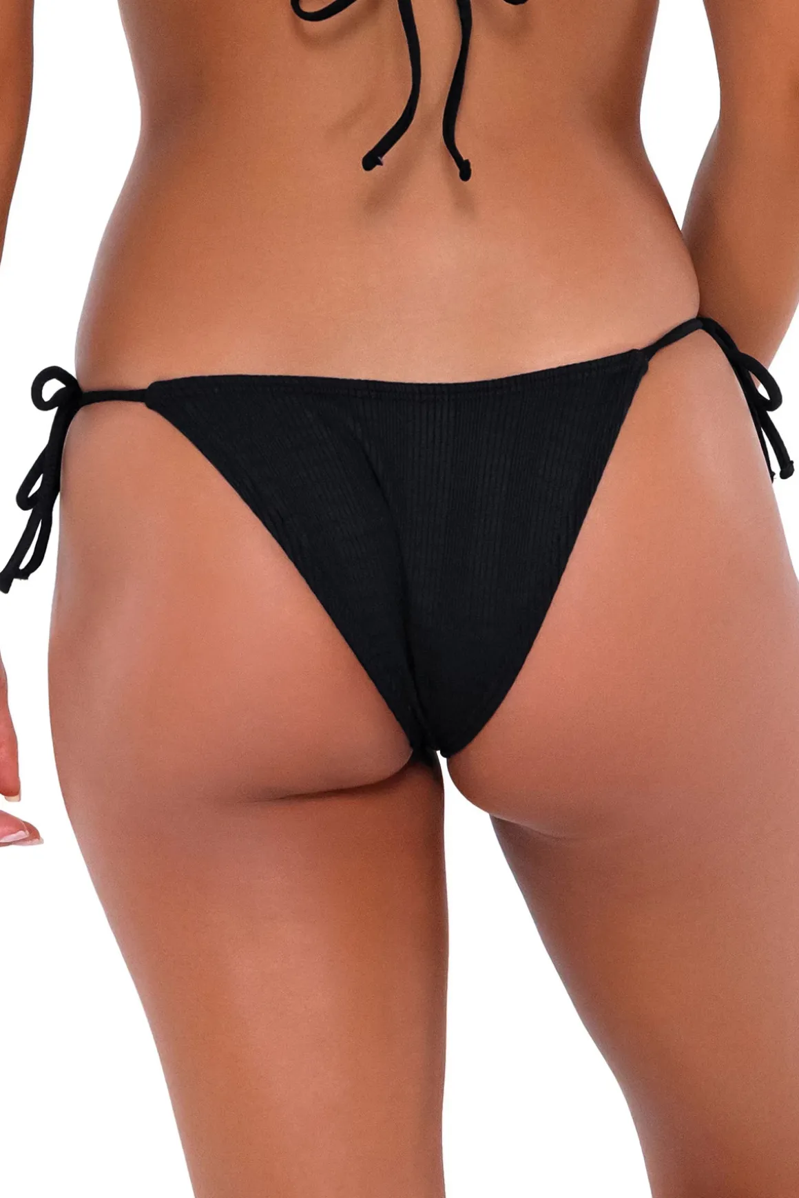 The Jaelyn, featuring a scoop front and tie sides that sit high on your hip to give you that long-leg, curvy look. This is your new classic bottom.