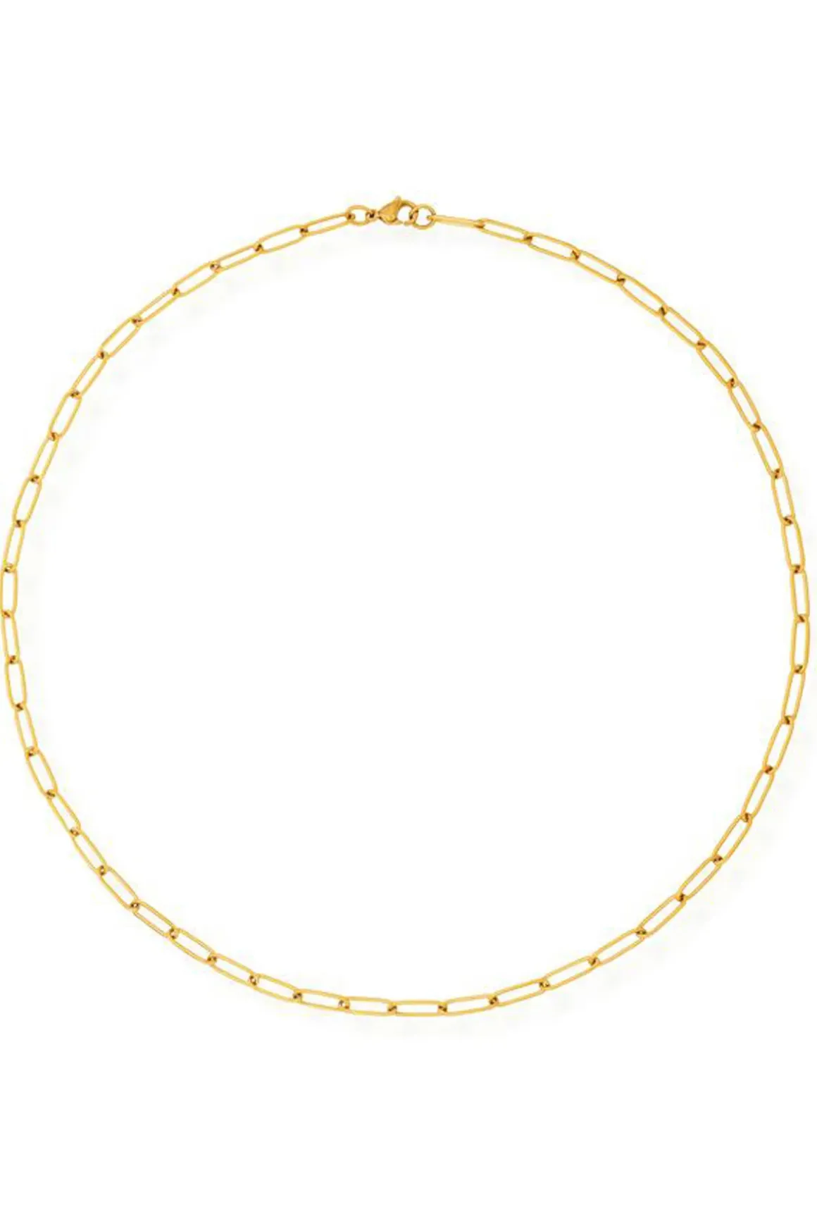 Jayden necklace features a stainless steel paperclip chain with a lobster clasp closure.