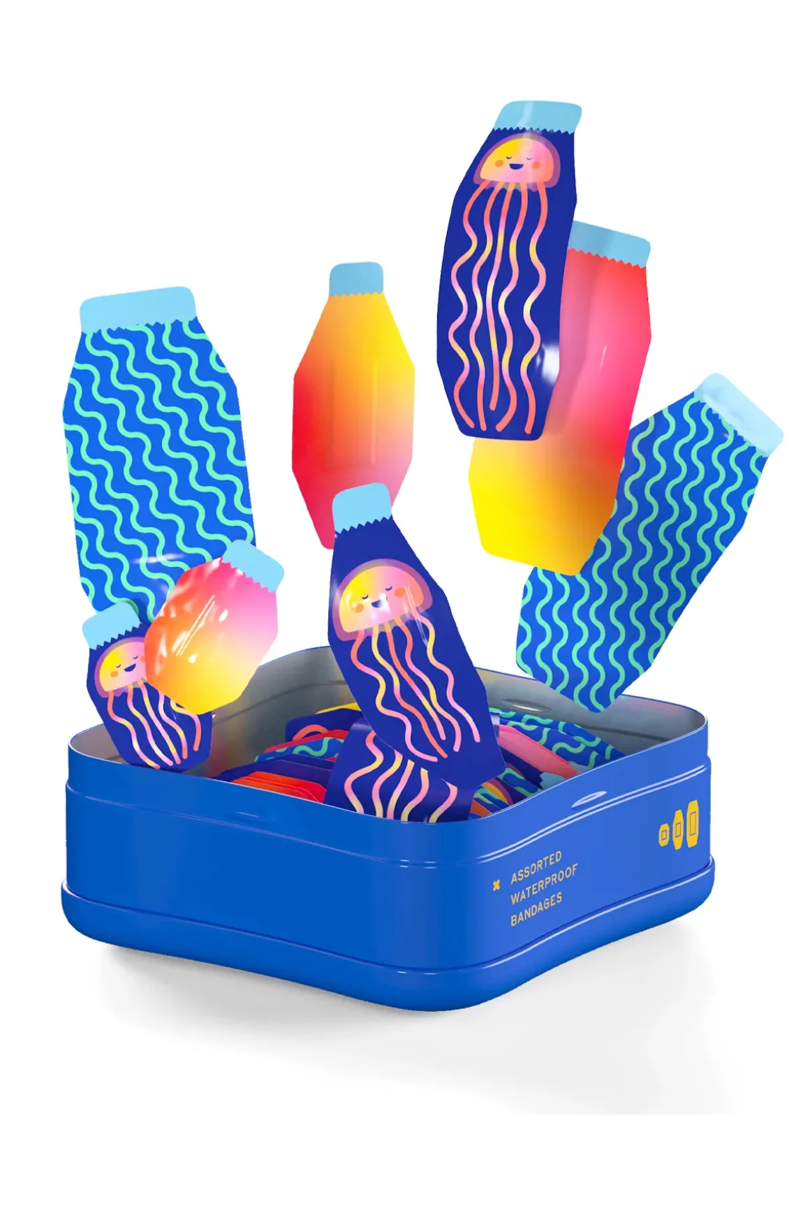 Jellyfish waterproof bandages feature an assortment of colorful bandages made of waterproof material that will move with your every move.