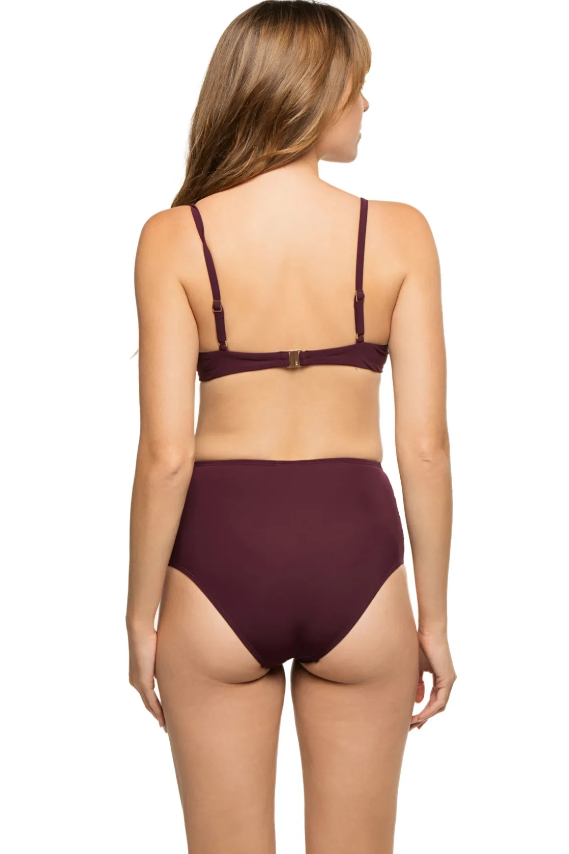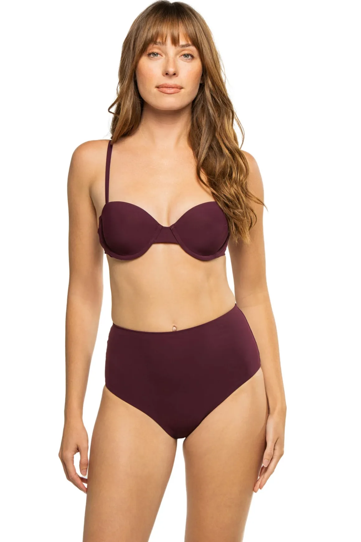 Balconette bikini top features molded cups, supportive underwire, adjustable straps, and a back clasp closure.