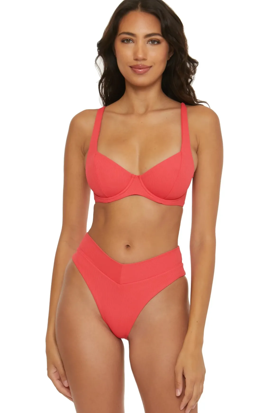 Lana bikini top features a ribbed texture with a sweetheart neckline and offers removable cups, supportive underwire and a corset lace up back.