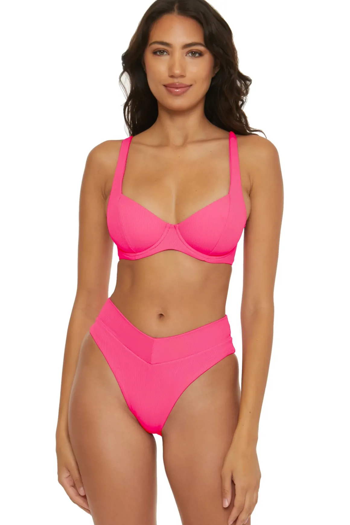 Lana bikini top features a ribbed texture with a sweetheart neckline and offers removable cups, supportive underwire and a corset lace up back.
