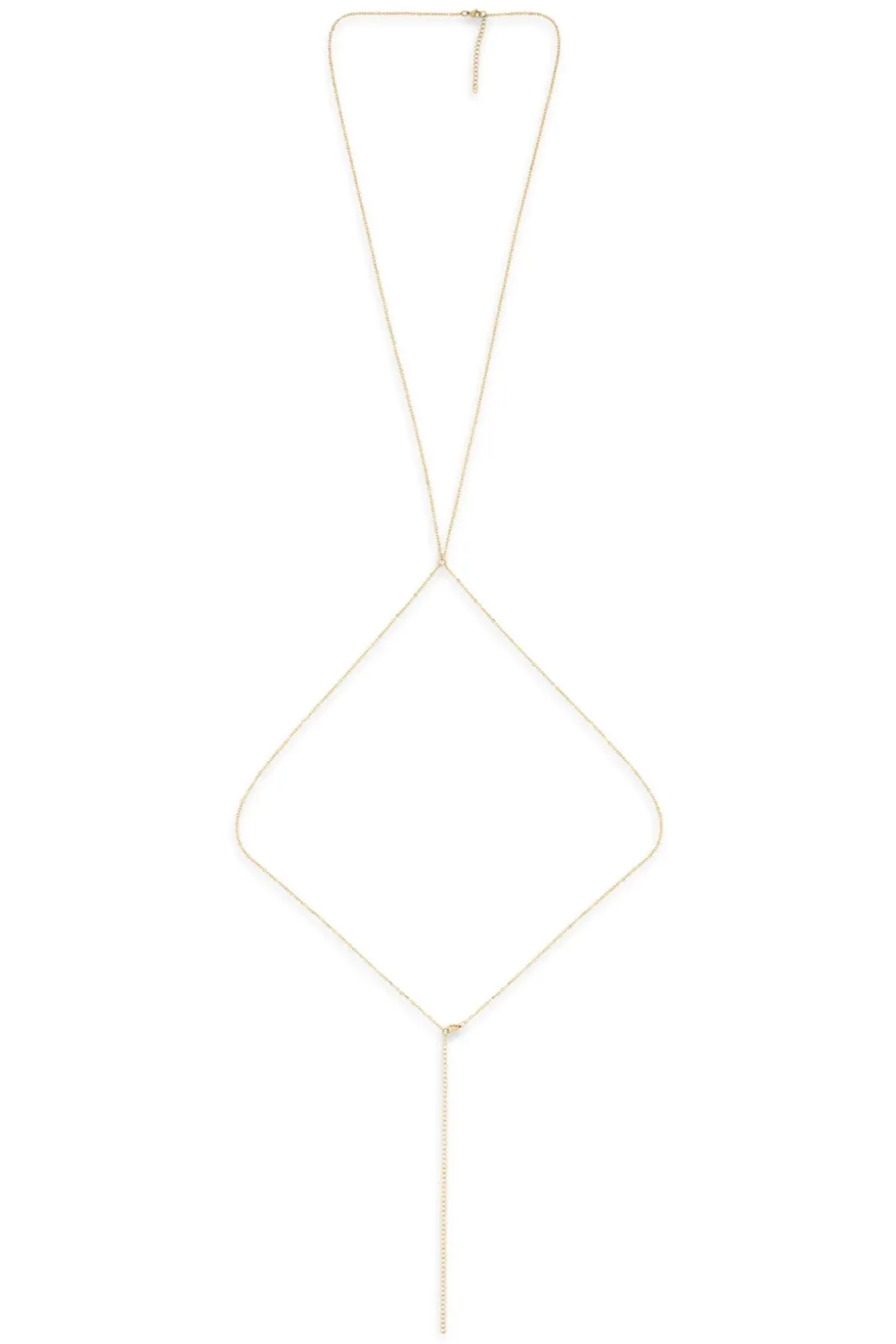 Lara body chain features water resistant stainless steel and a lobster clasp closure.