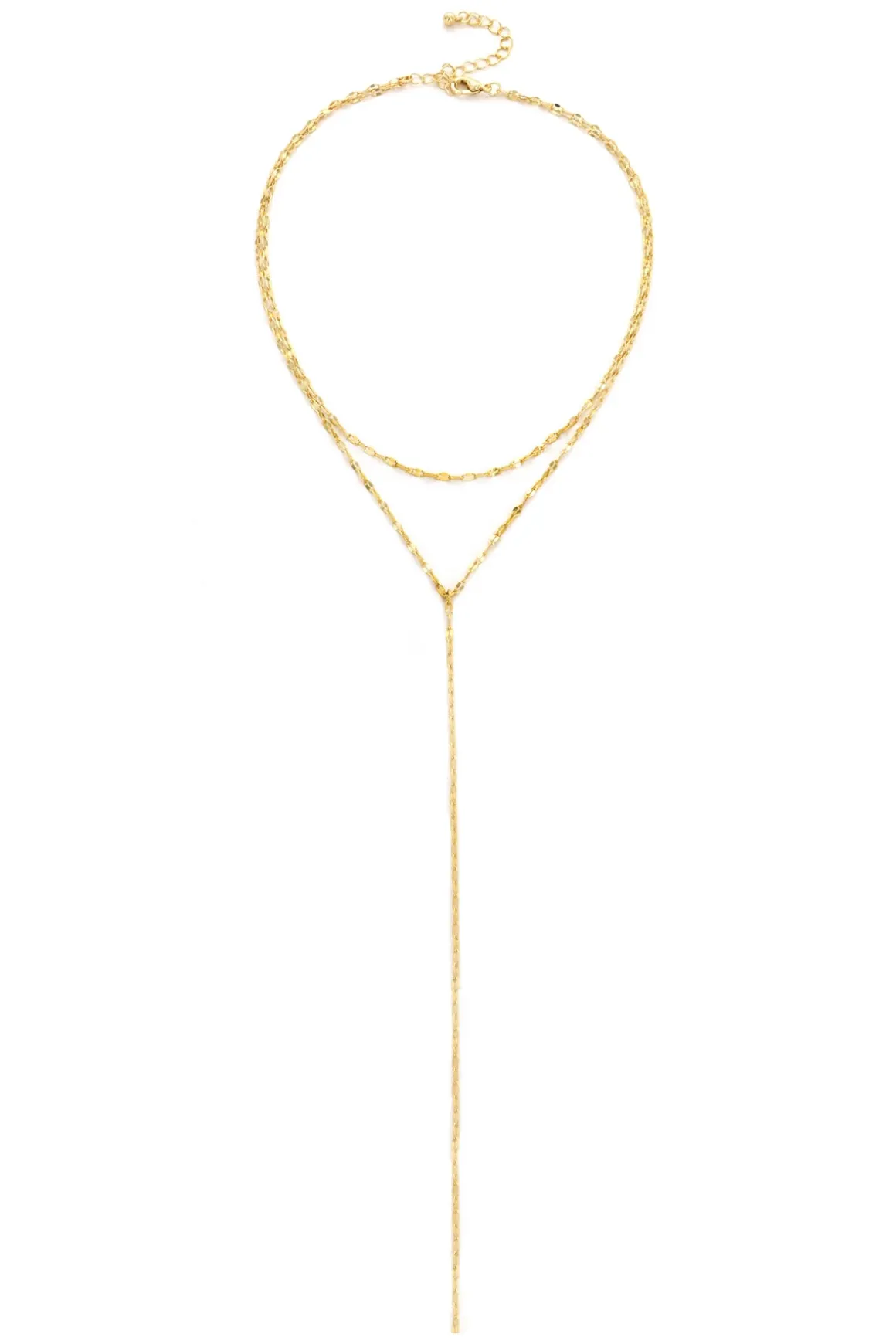 Necklace features gold plated brass layered chains and offers clasp closure with extender.