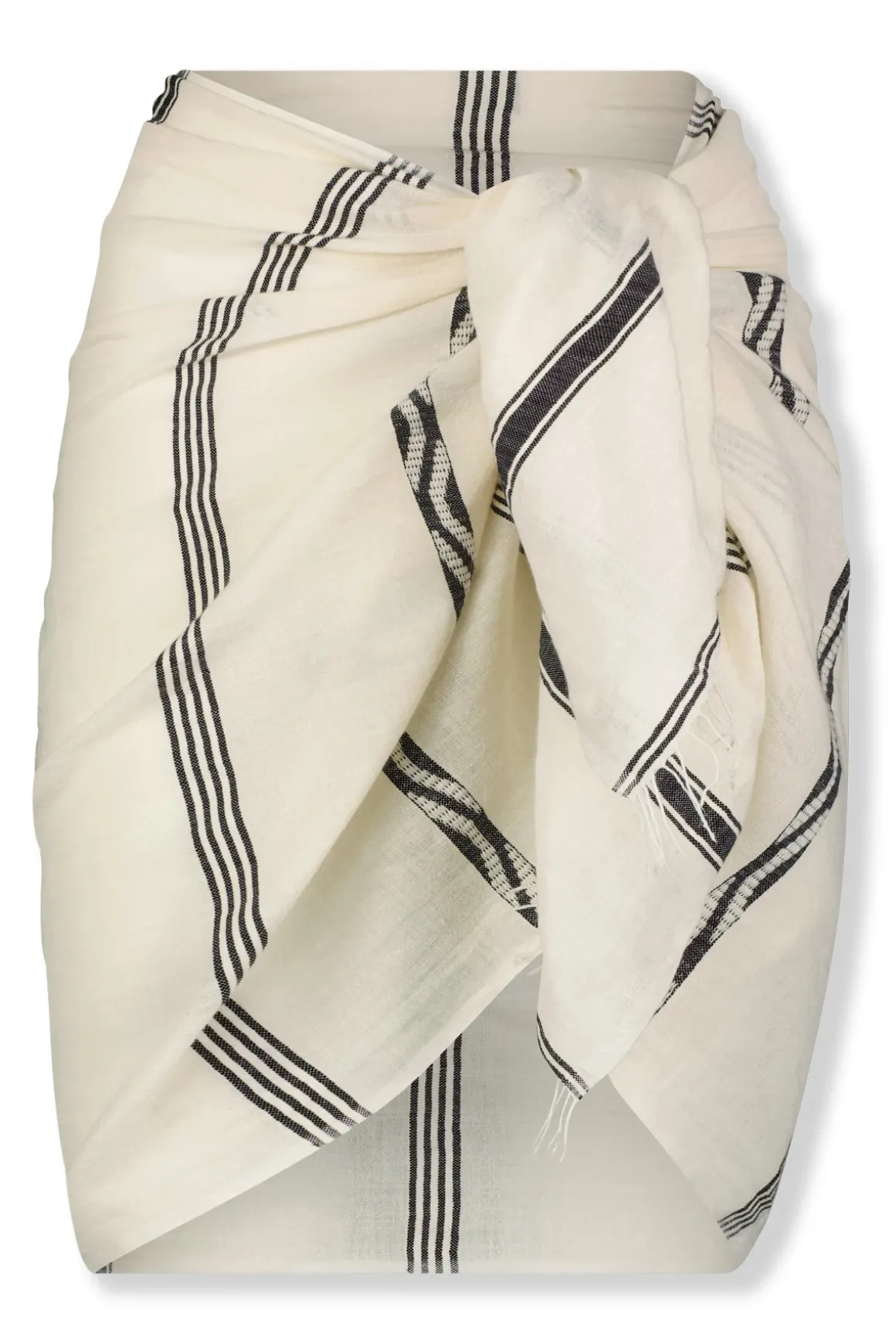 Lema handwoven sarong features Tibeb border patterns and offers a self tie waist. Can be worn multiple ways, as a scarf, a cover up around the chest, a pareo around the waist or laid out flat as a beach blanket.