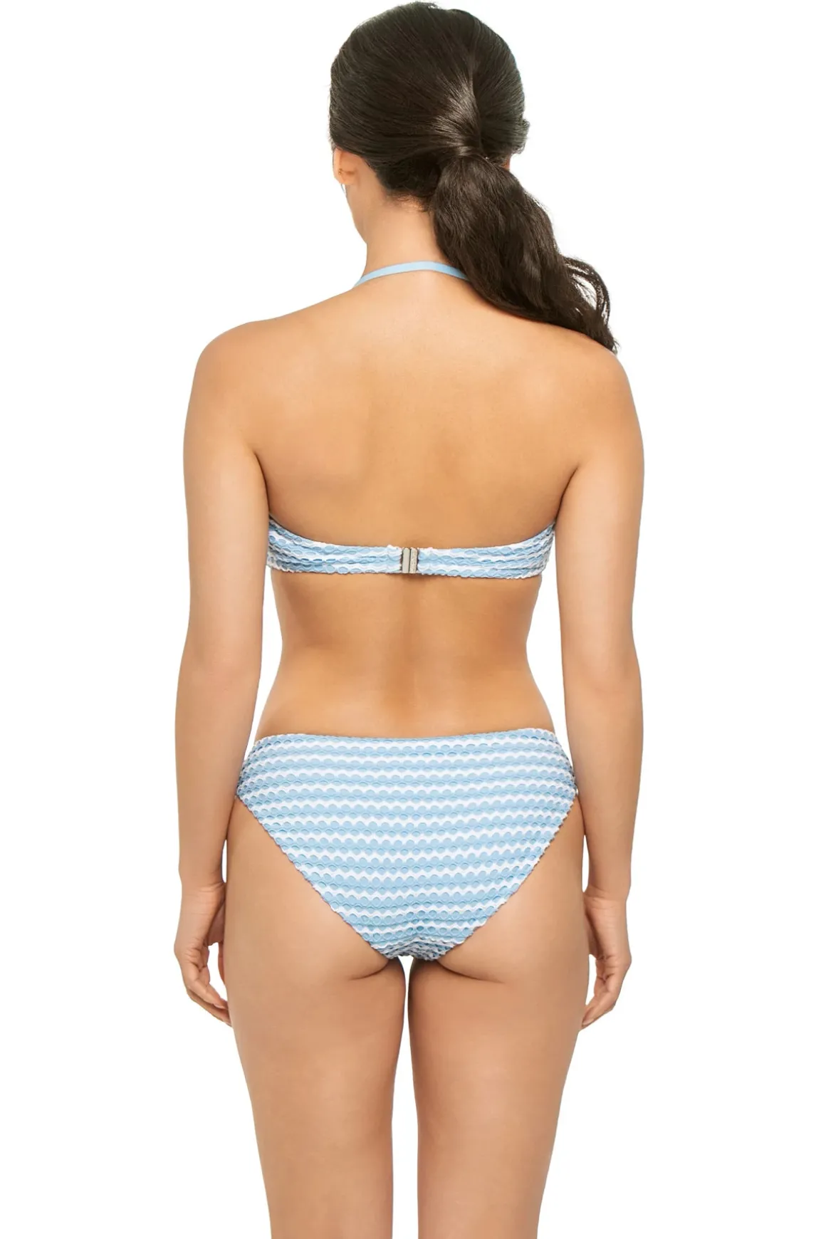 Bandeau bikini top features a crochet overlay, molded cups with hidden underwire, gripper tape, and side boning. Offers removable straps and a back clasp closure.