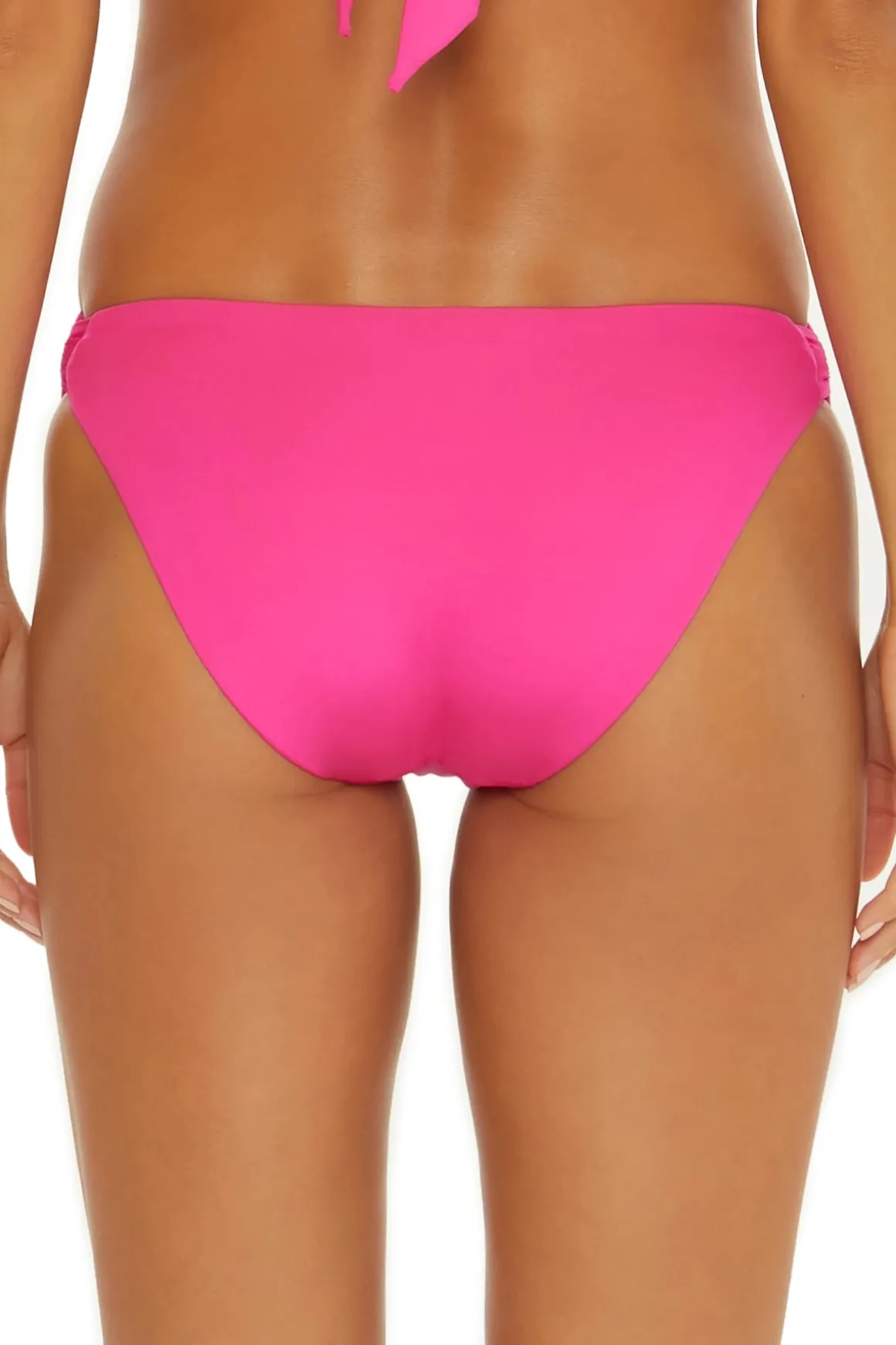 Monaco hipster bikini bottom features chain ring detail at hips and offers a high cut leg and moderate coverage.