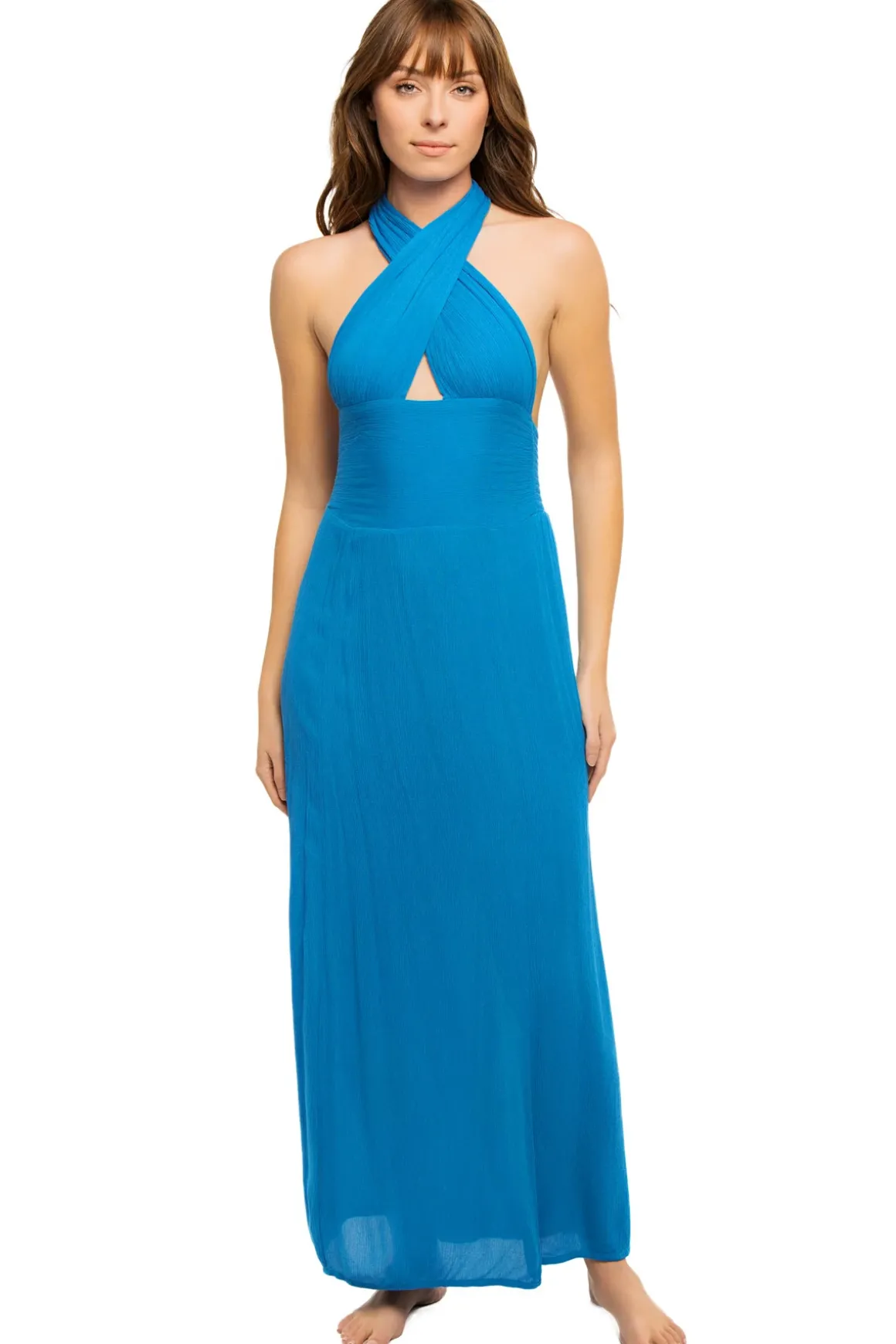 Maxi dress features wide ties that can be worn a variety of ways.