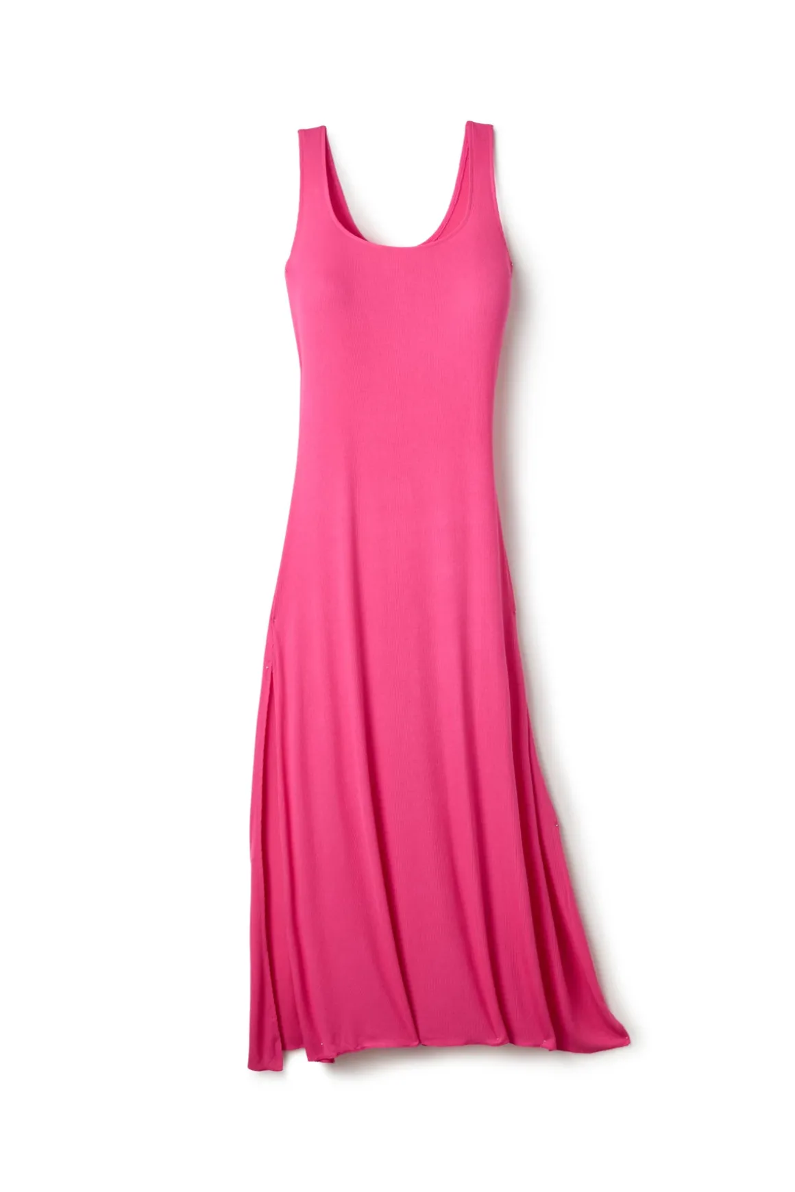 Mykonos maxi dress features ribbed fabric and side slits.