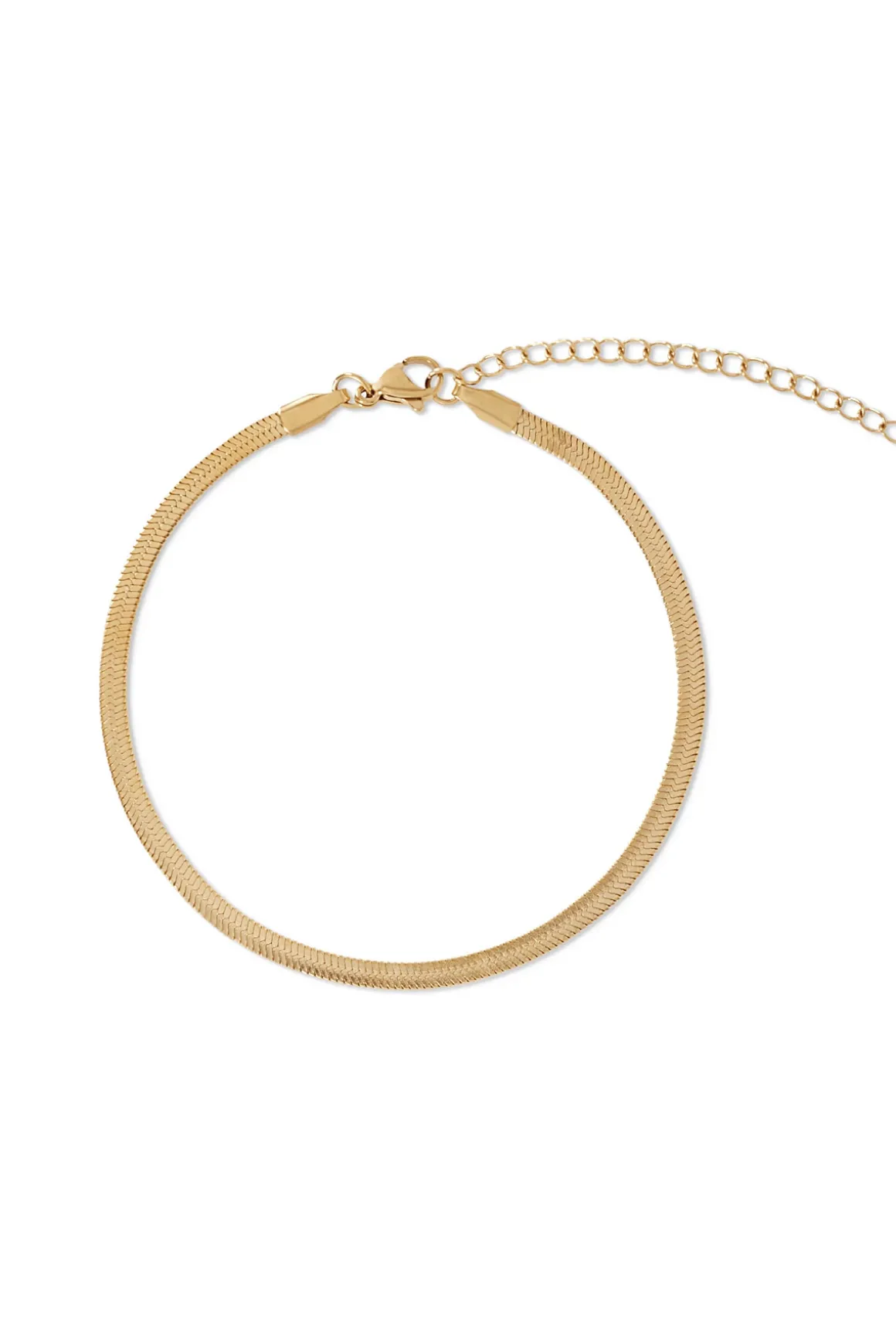 Nic anklet is water resistant and made from gold plated stainless steel. Offers a lobster clasp closure with an extender.