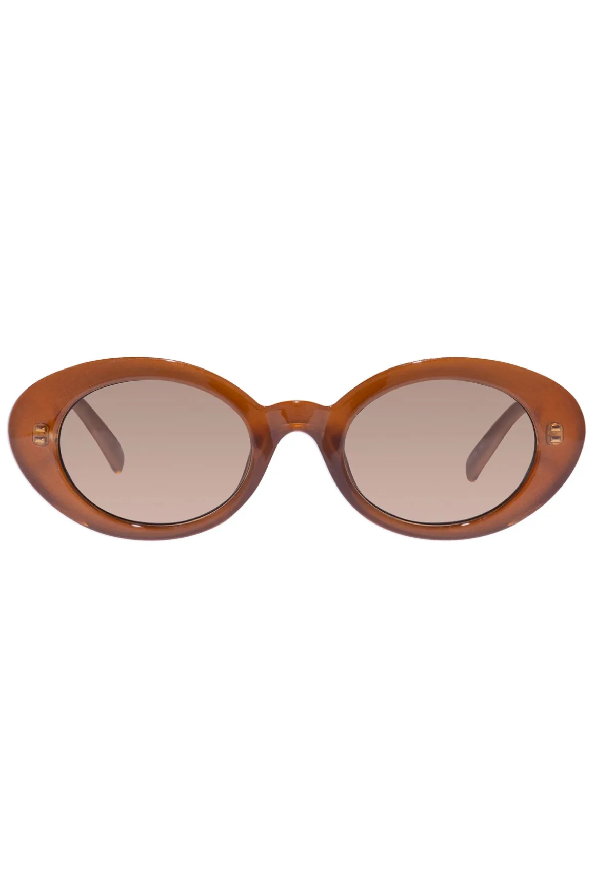 Nouveau Vi sunglasses feature an oval frame and a modern, minimalist design accentuated by gold metal hardware. Each pair includes a Le Specs protective pouch and microfiber cleaning cloth.
