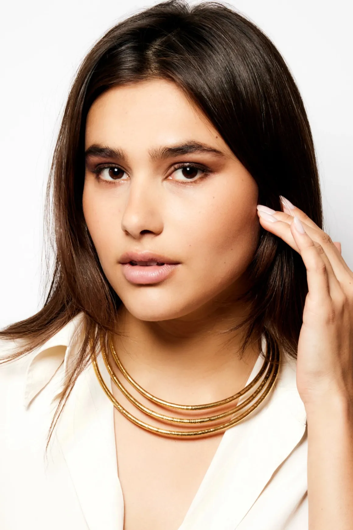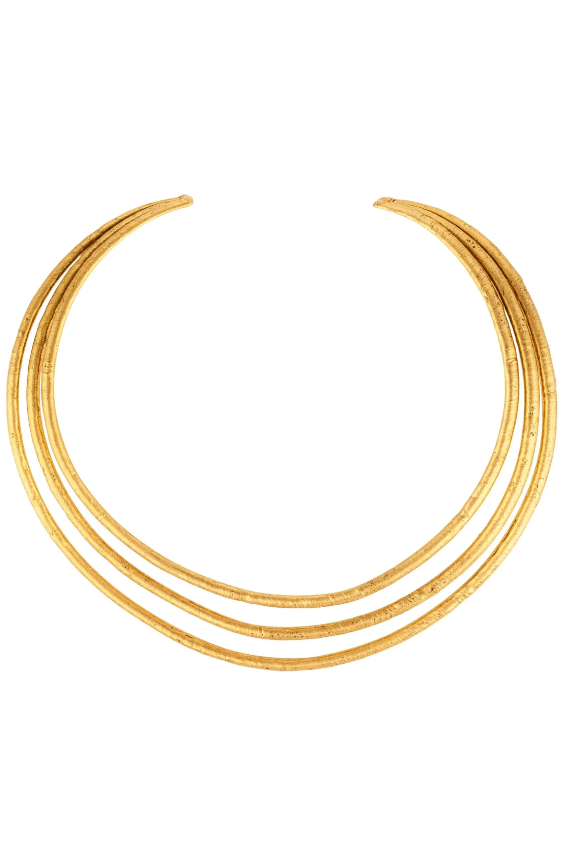 Osiris triple band necklace features three delicate gold-plated brass bands that wrap around the neck.