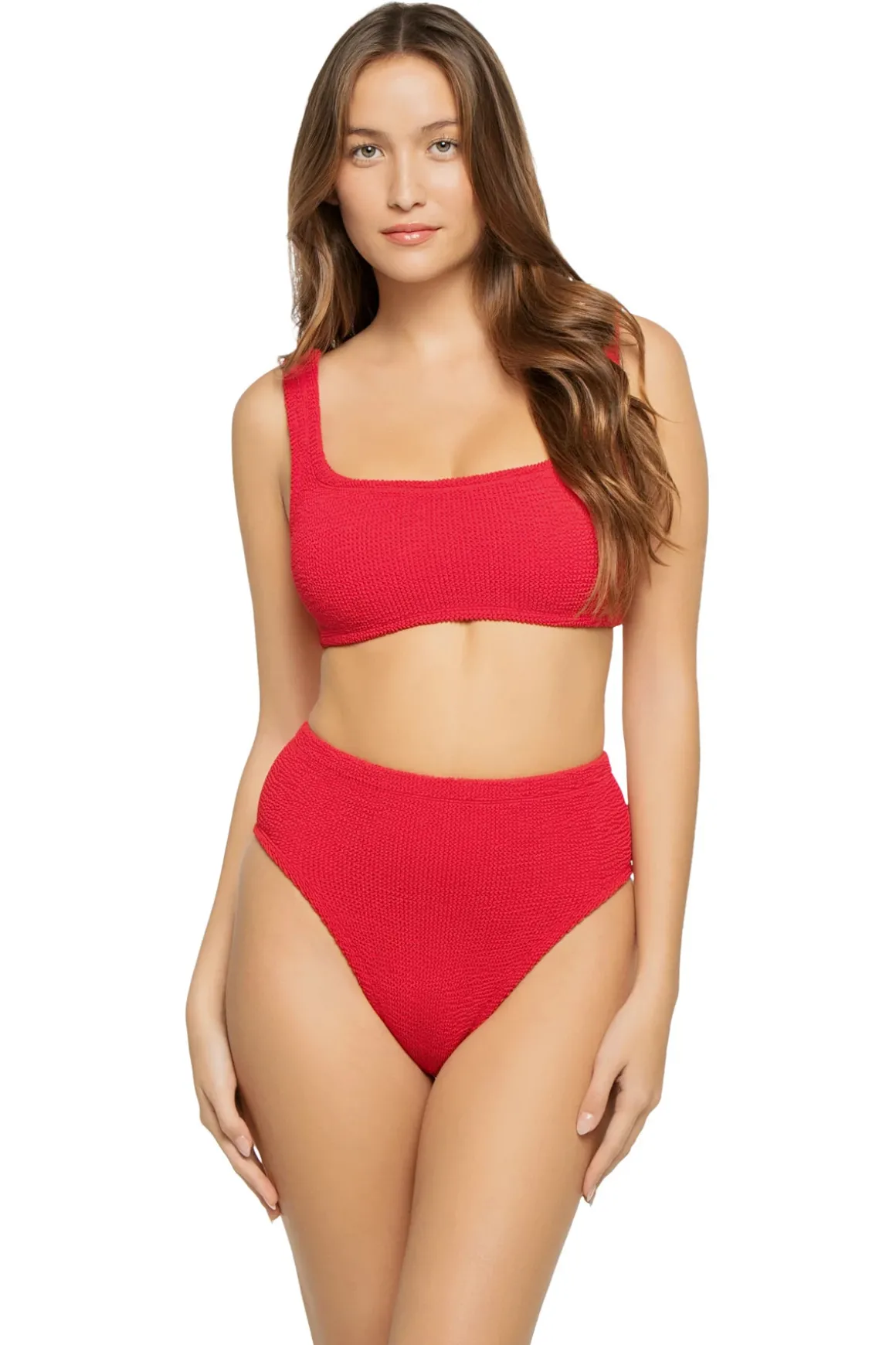 Patricia two piece bikini set features signature crinkle-stretch fabrication, square neckline and pairs with high waisted bottom.