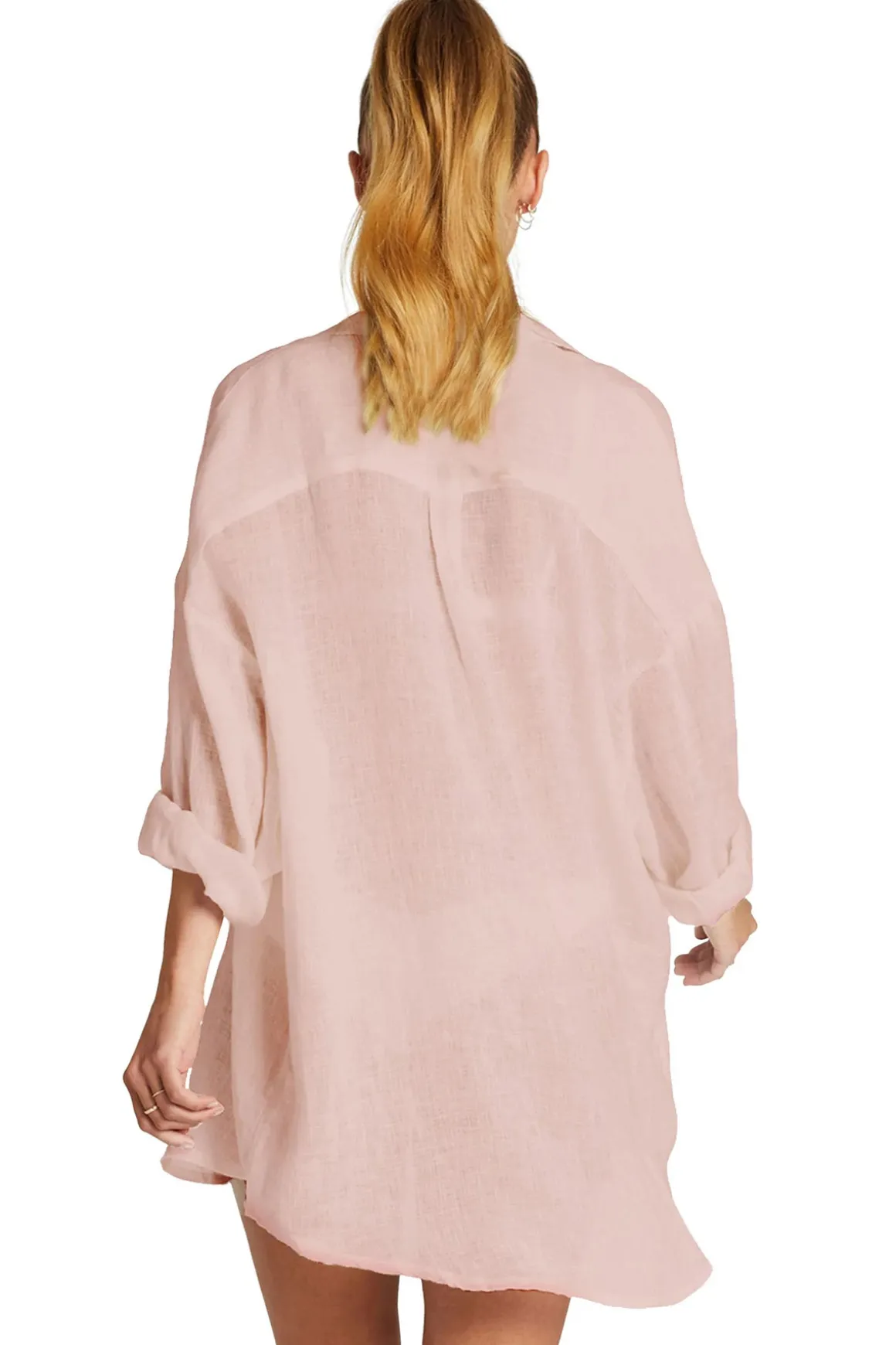 Floaty linen shirt dress – a chic, easy essential with drop sleeve, natural shell buttons. Perfect for any destination, on or off the beach.