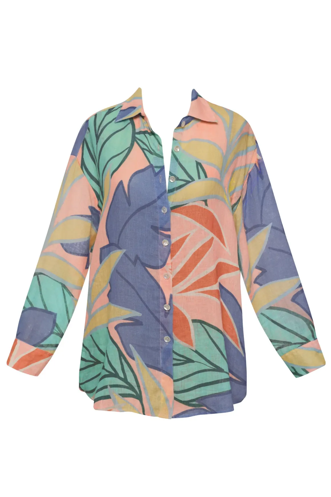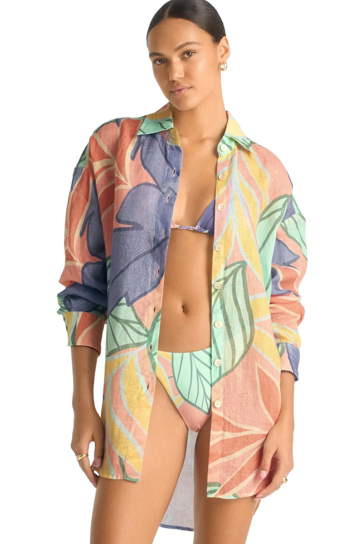 Floaty shirt dress is a chic, easy essential with drop sleeves and natural shell buttons. Perfect for any destination, on or off the beach.