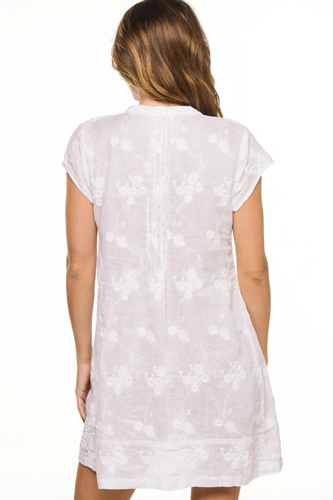 Regina tunic features a cap sleeve, pleat detail and v-neckline.