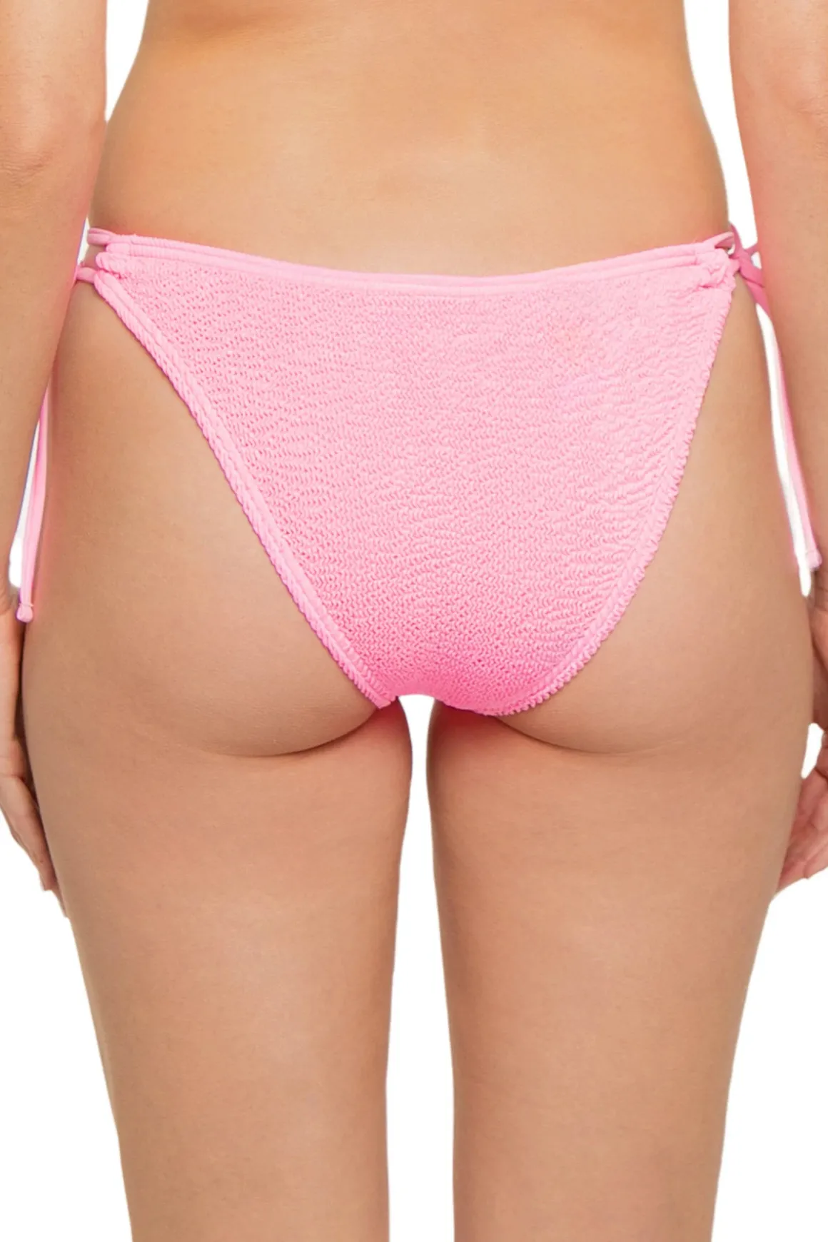 Hipster bikini bottom features a rose detail, and offers adjustable tie sides, and minimal coverage.