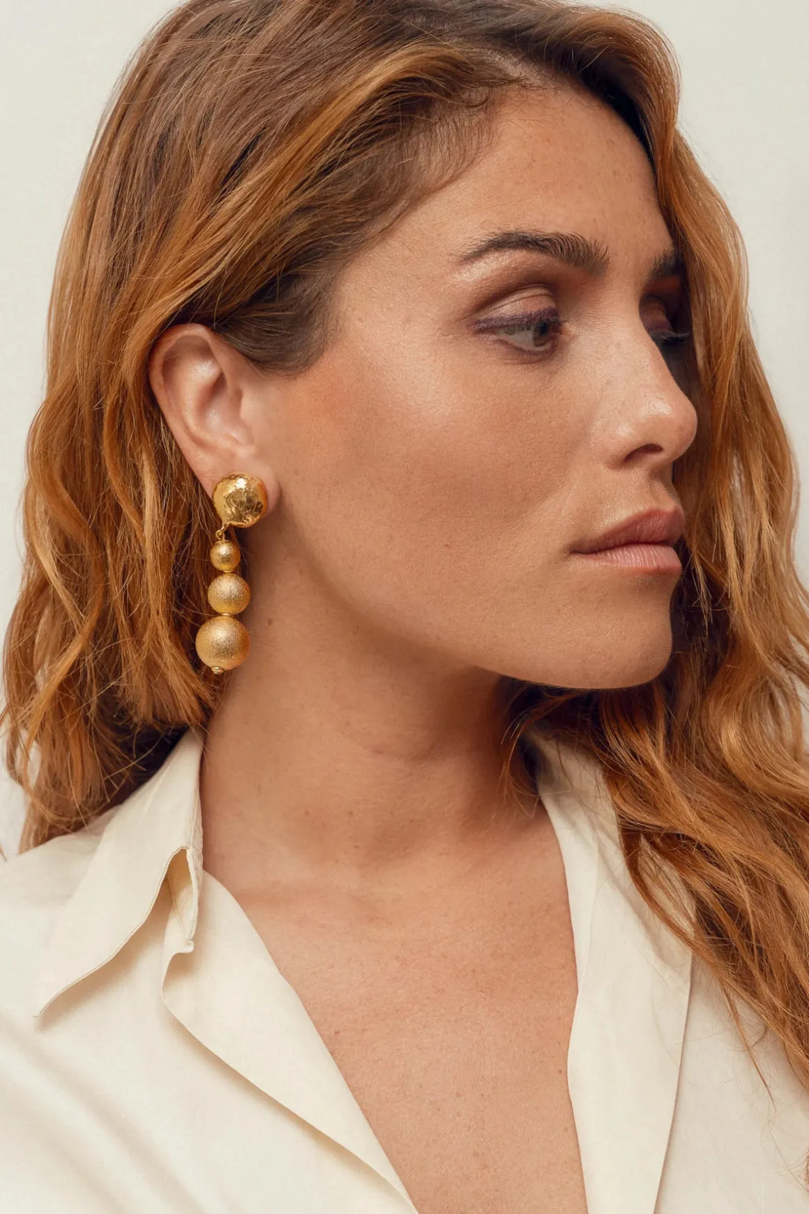Sand earrings feature gold plated brass bubble drop pendants with a post back closure.