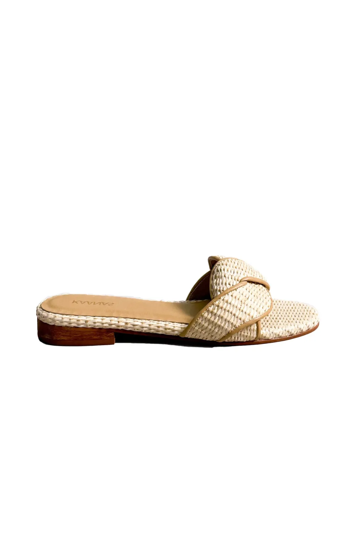 Sierra slides feature an intricate handwoven basket weave strap, offering a chic yet laid-back appeal with all-day wearability.
