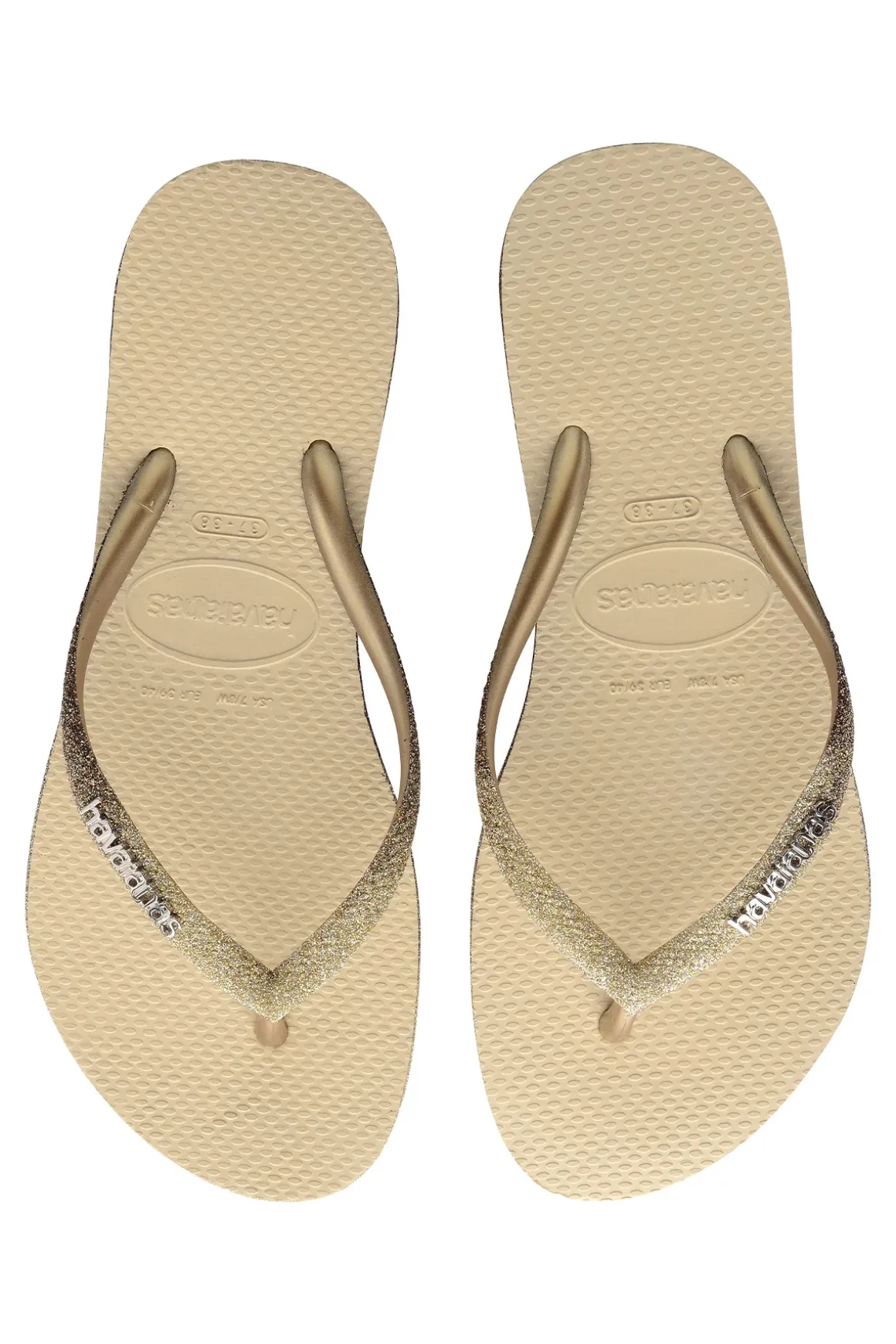 Slim Sparkle flip flops feature glitter coated straps and sole edges.