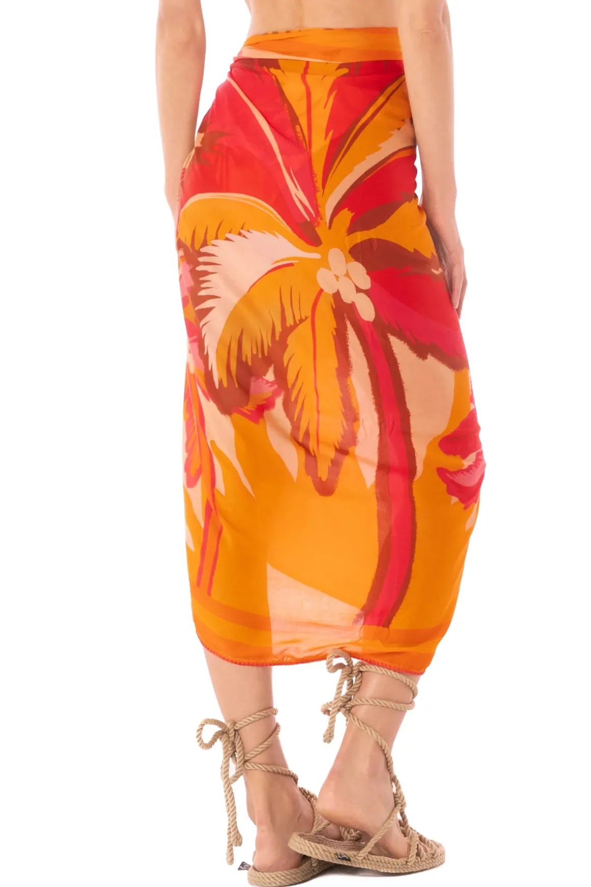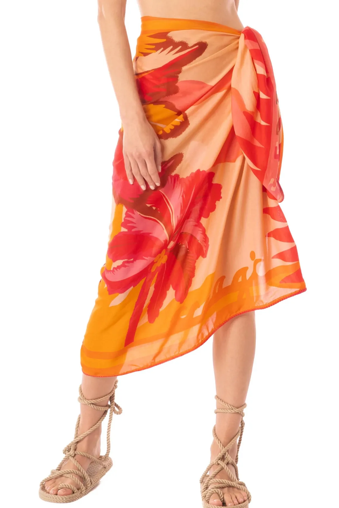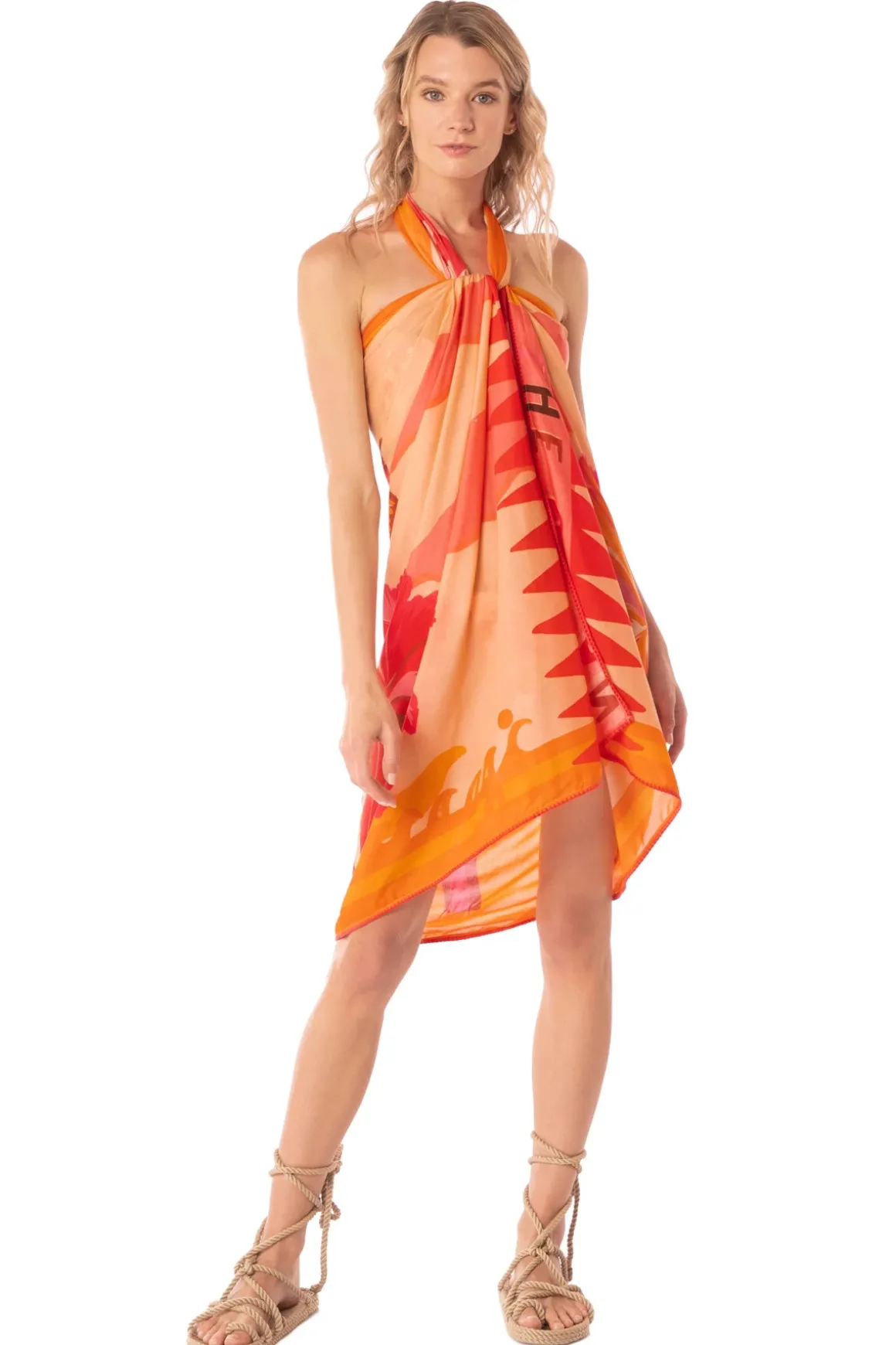 Pareo features a vibrant tropical print and can be styled in multiple ways, with a versatile tie closure for a customizable fit.