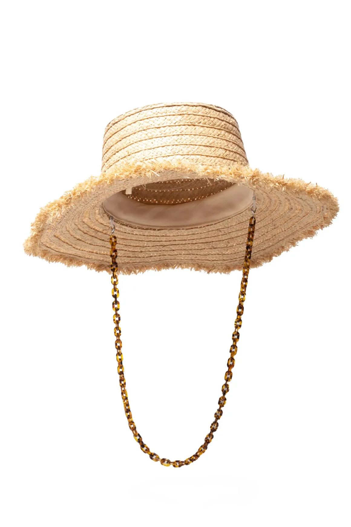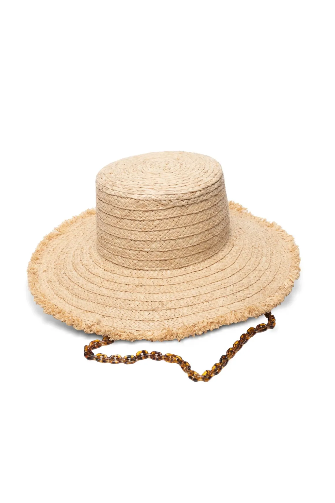 Talia hat crafted from raffia features playful fringe detailing and offers a removable chin strap for versatility.