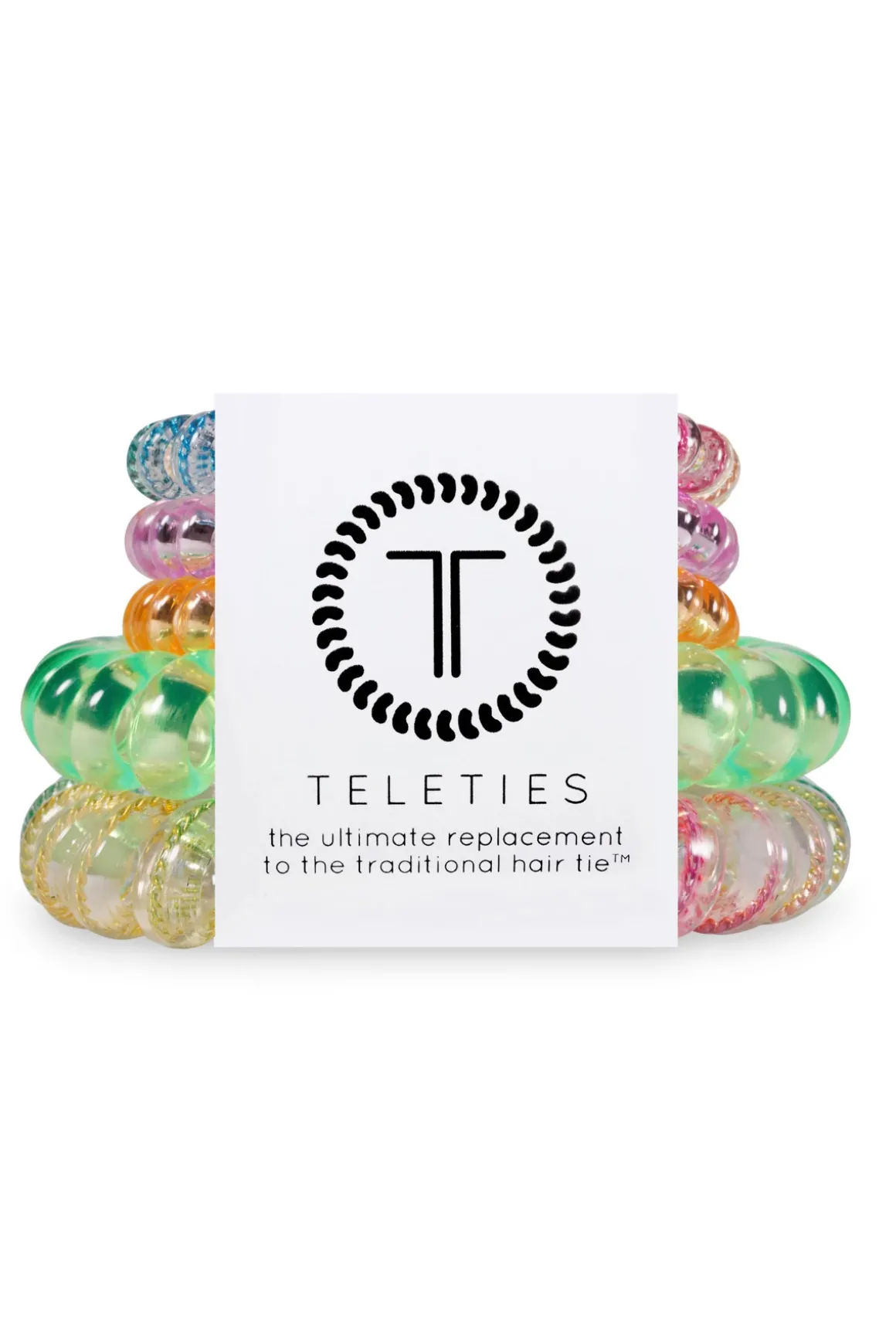 Say goodbye to bland, hair ripping hair ties with Teleties elastic hair bands. These flexible hair accessories are water resistant, provide less headaches and reduce damages as well as hair creases when you let your hair down. Hold is no longer an issue as Teleties provide a strong grip and doubles as a fashion statement when worn as stackable bracelets.