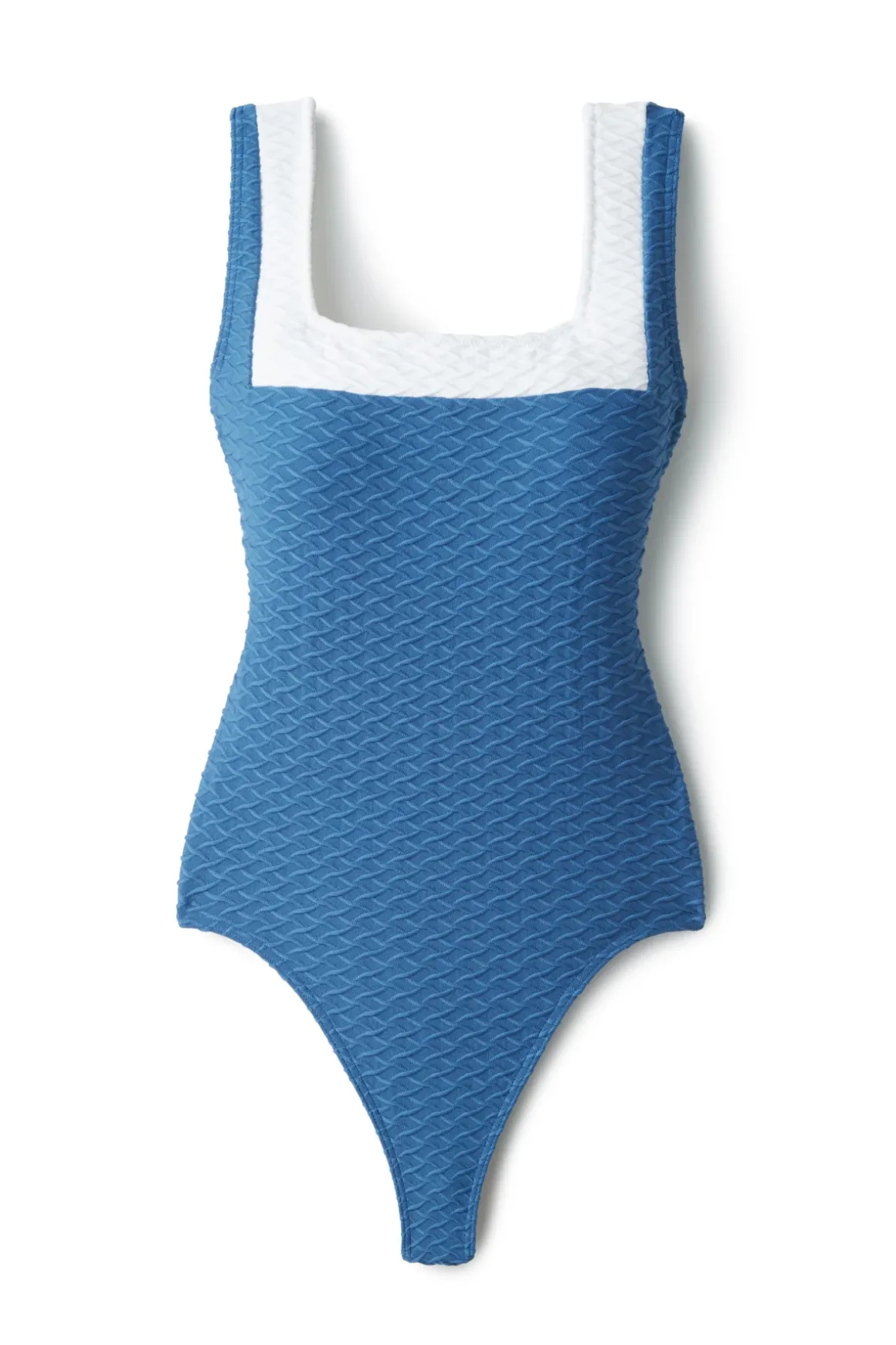 Square neck textured one piece with supportive wide straps, effortless and comfortable.
