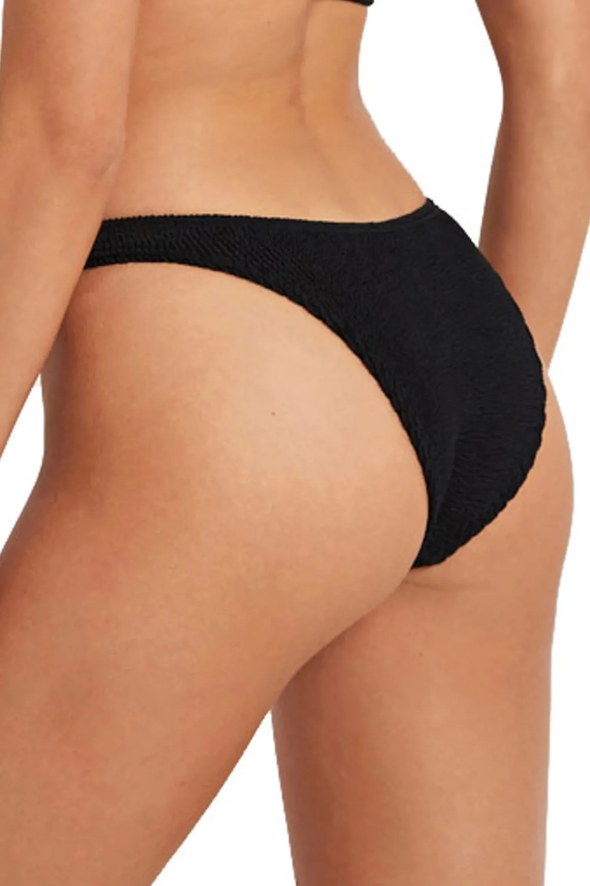 The Scene Brief bikini bottom features thin cut sides and curved waistline. Coverage is adjustable: can be worn high leg with cheeky coverage or low over the hip for more coverage. Offers twin needle finish that keeps the suit in place.