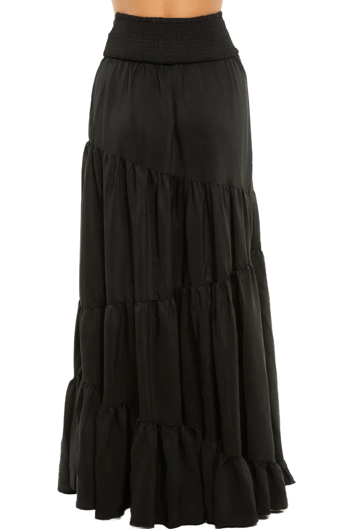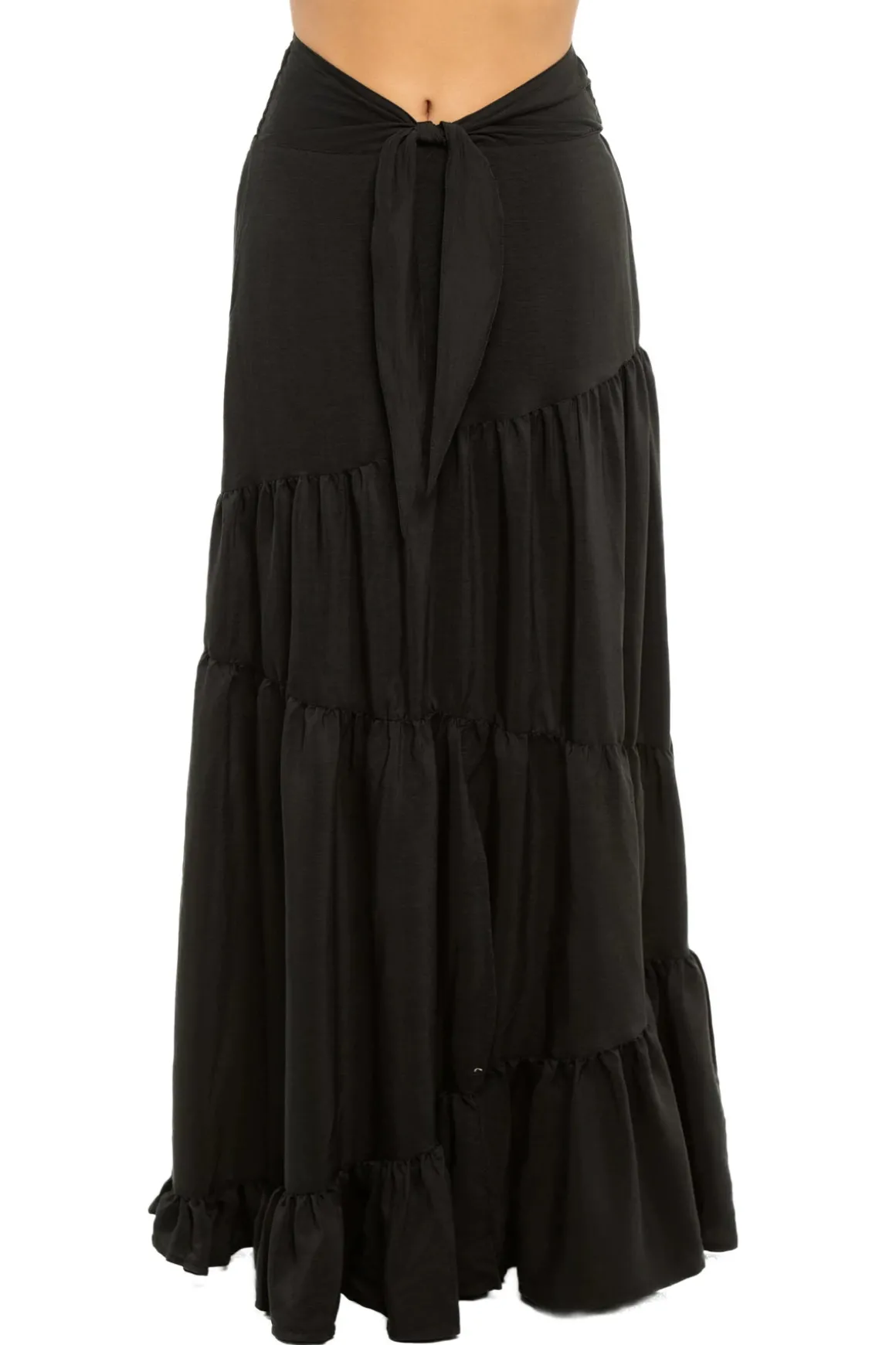 Tilly maxi skirt dress features a tiered skirt, knot front and back elastic waist. Can be worn as a maxi skirt.