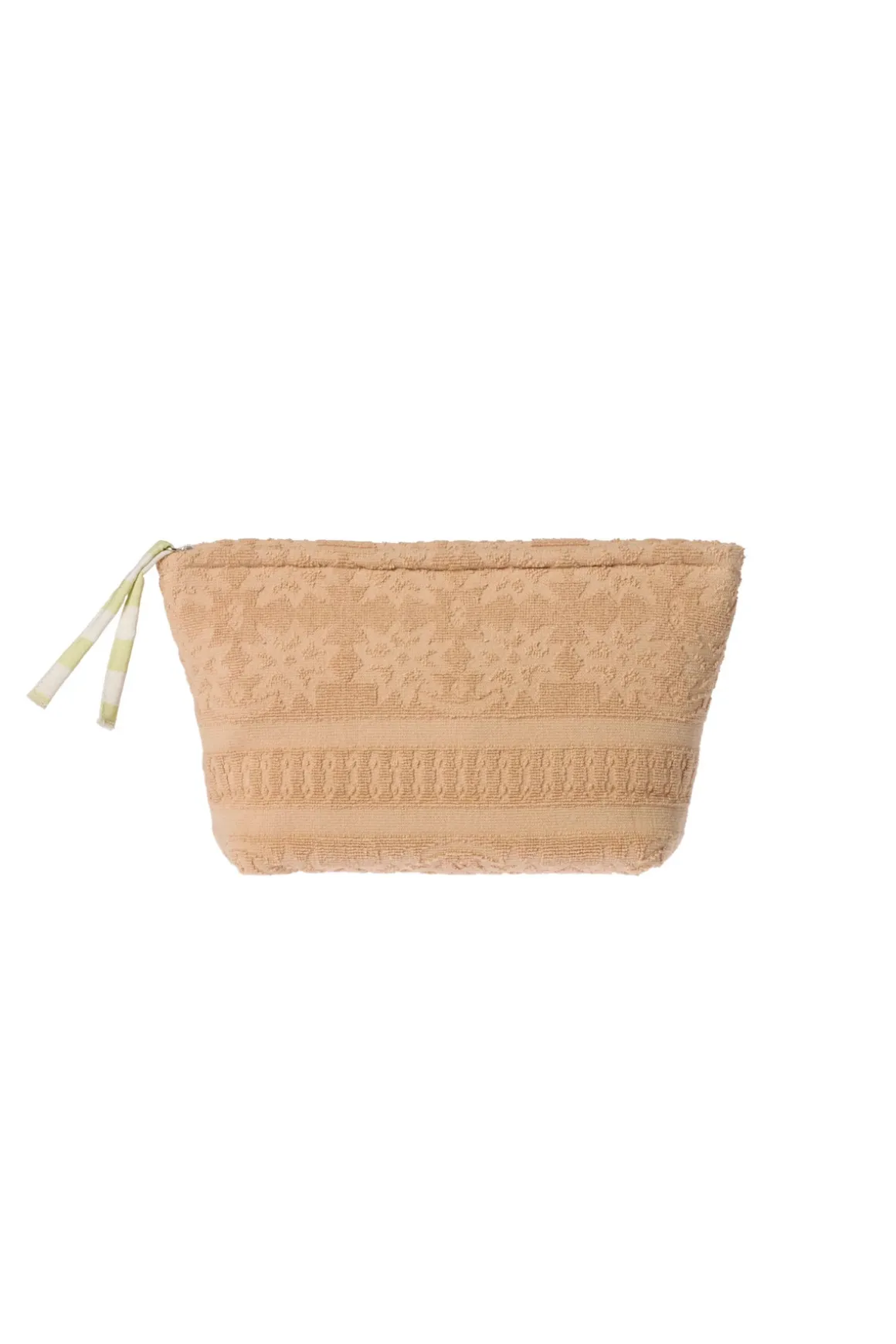 The Walakin Eponge clutch is a compact carry-all made of cotton towel material featuring an African wax tassel zipper and interior lining. Color of lining may vary.