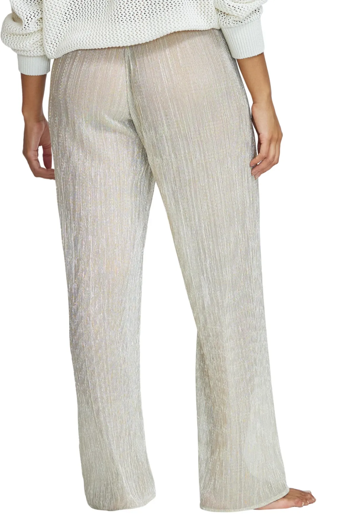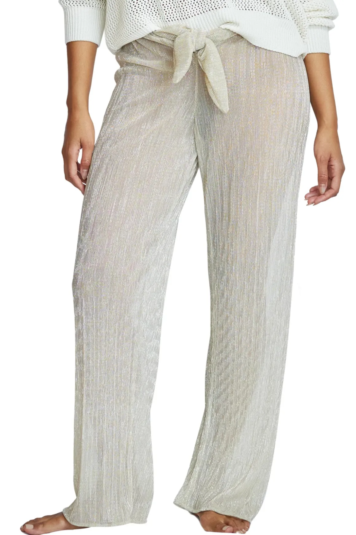 Waverly pants feature metallic details and offer an adjustable self tie waist.