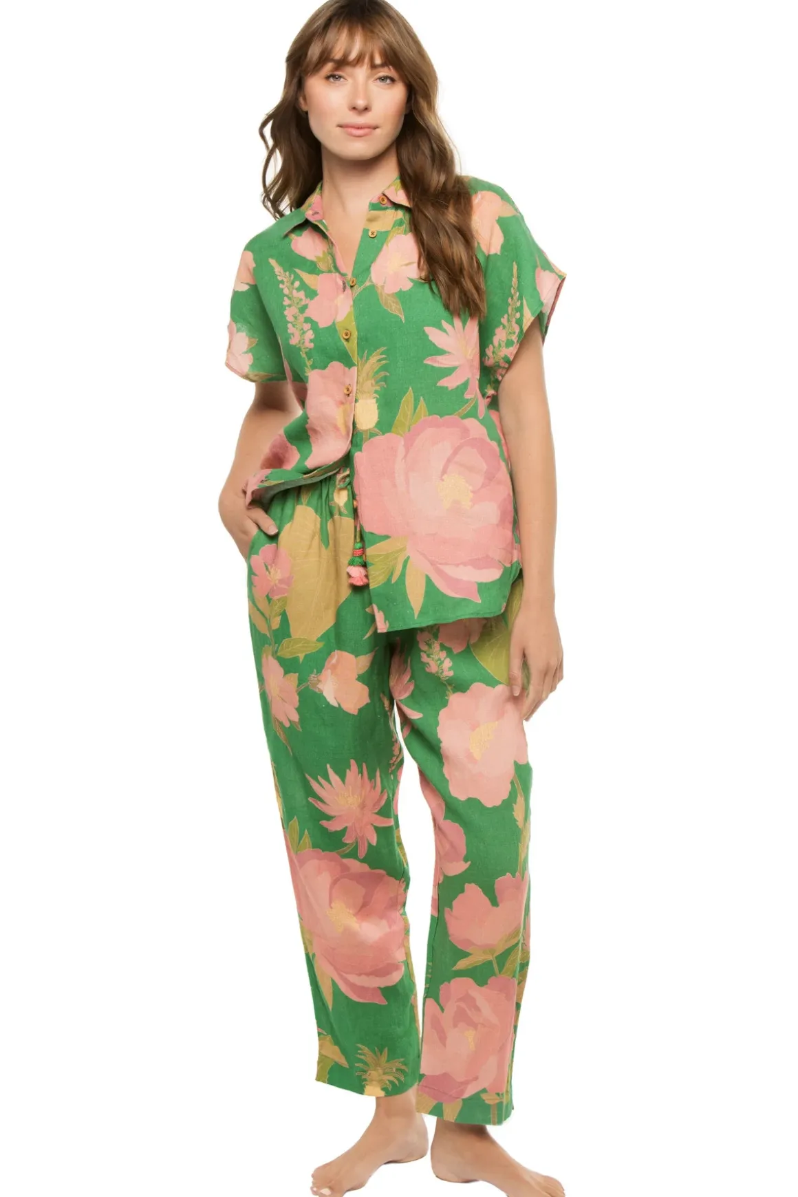 Winter Garden boy shirt features an oversized fit witha button front and wide short sleeves.